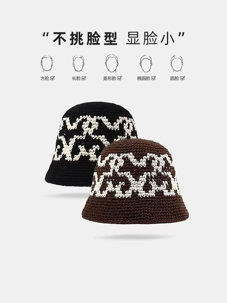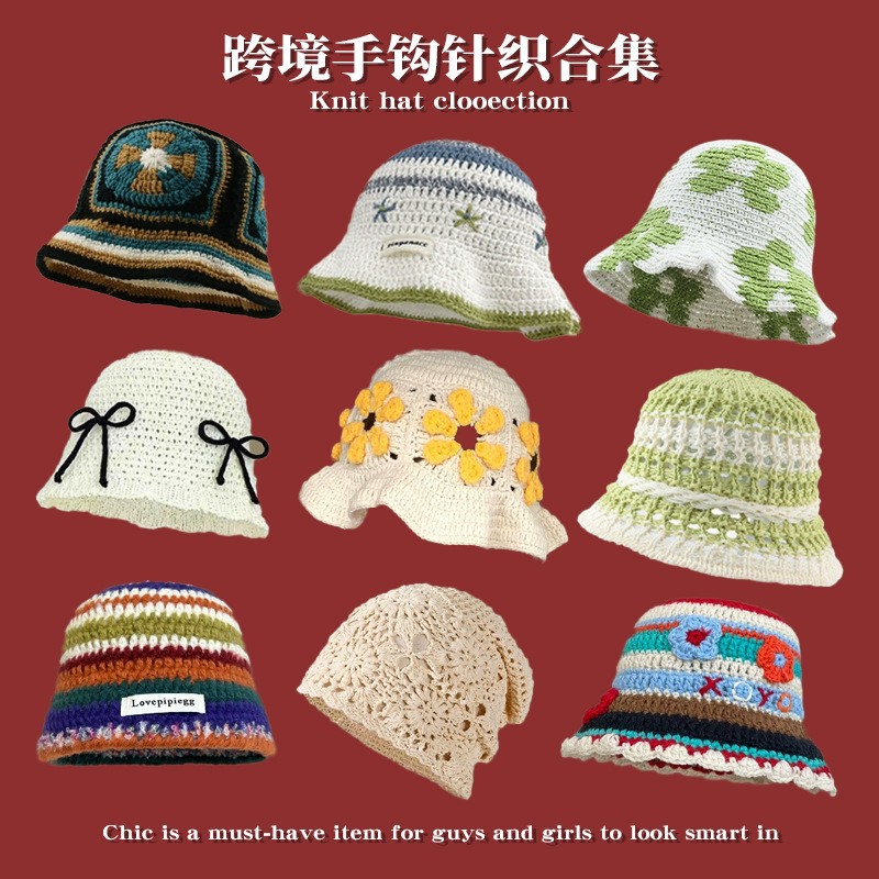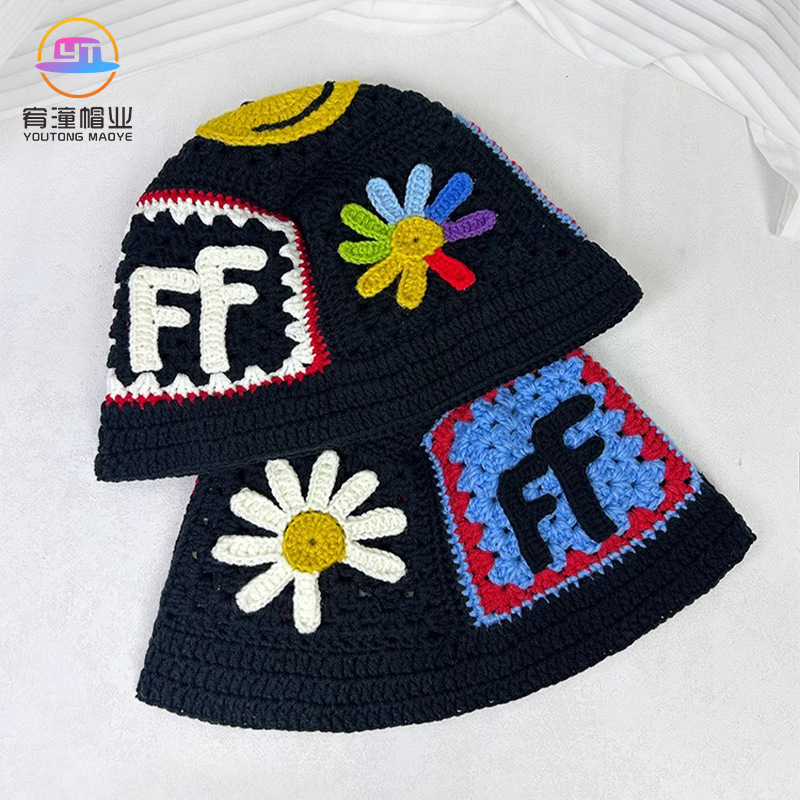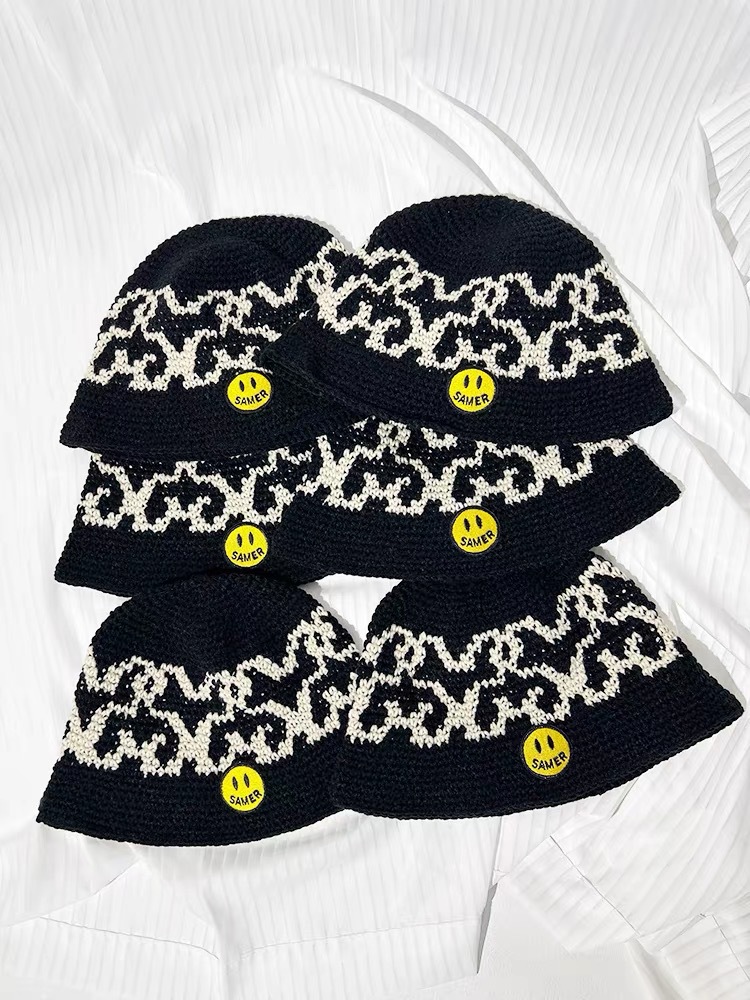 映像率の高い帽子、ニットウール帽子、春と秋の手編みデイジースマイリーフィッシャーマンハット、アメリカンボウルハット