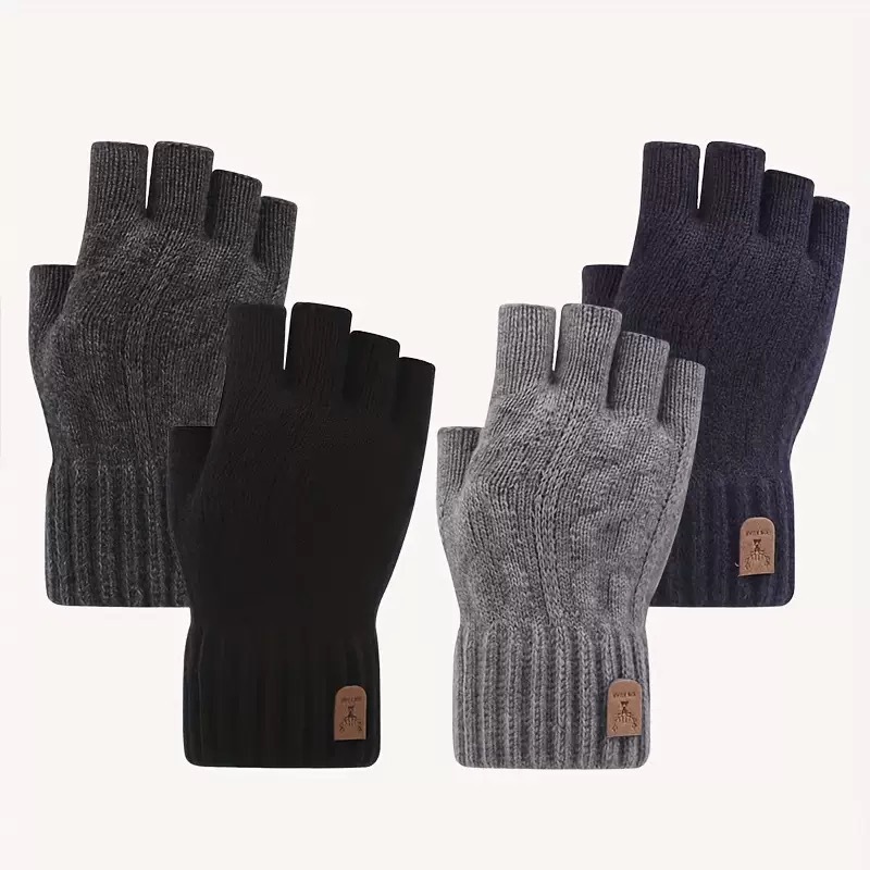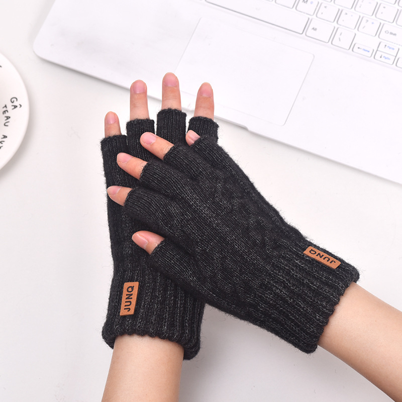 男性の半分の指が厚い保温手袋のメリヤスは、オフィスの学生のベルベットを真似て、純色の手袋を指している