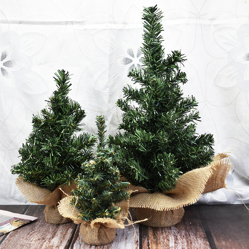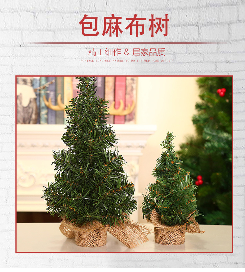 新款圣诞树20cm绿树30cm迷你圣诞树麻布底树圣诞节日商场橱窗桌面