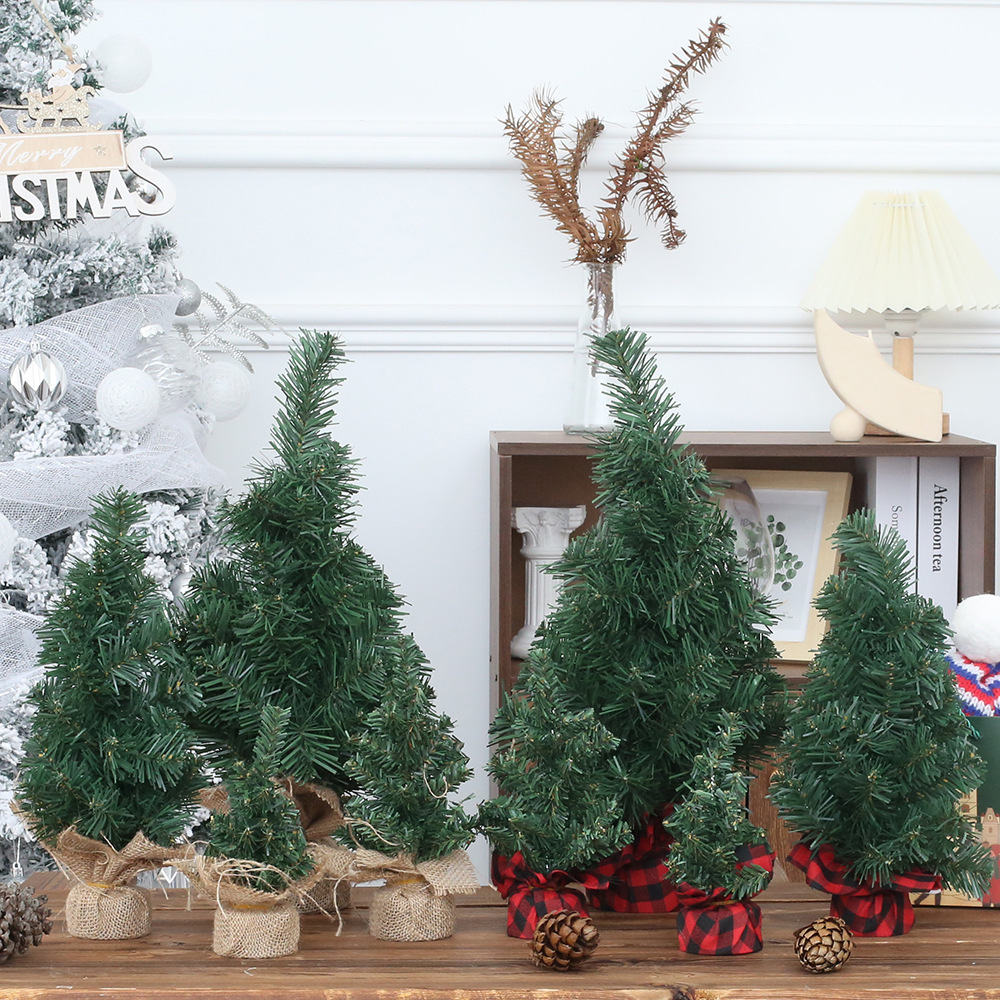 跨境热卖圣诞节桌面圣诞树45CM60CM尖头绿色PVC麻布底座家庭装饰