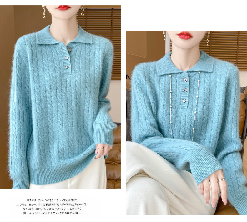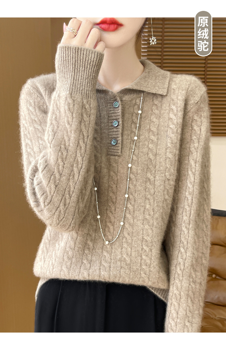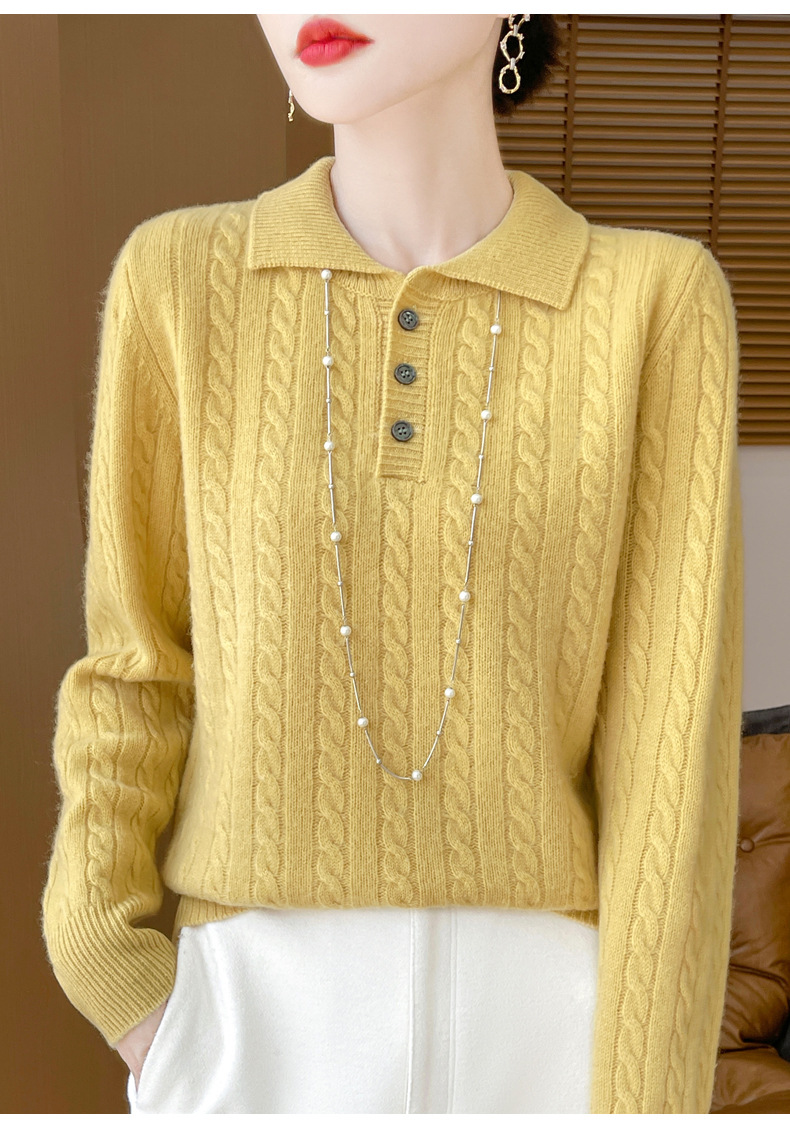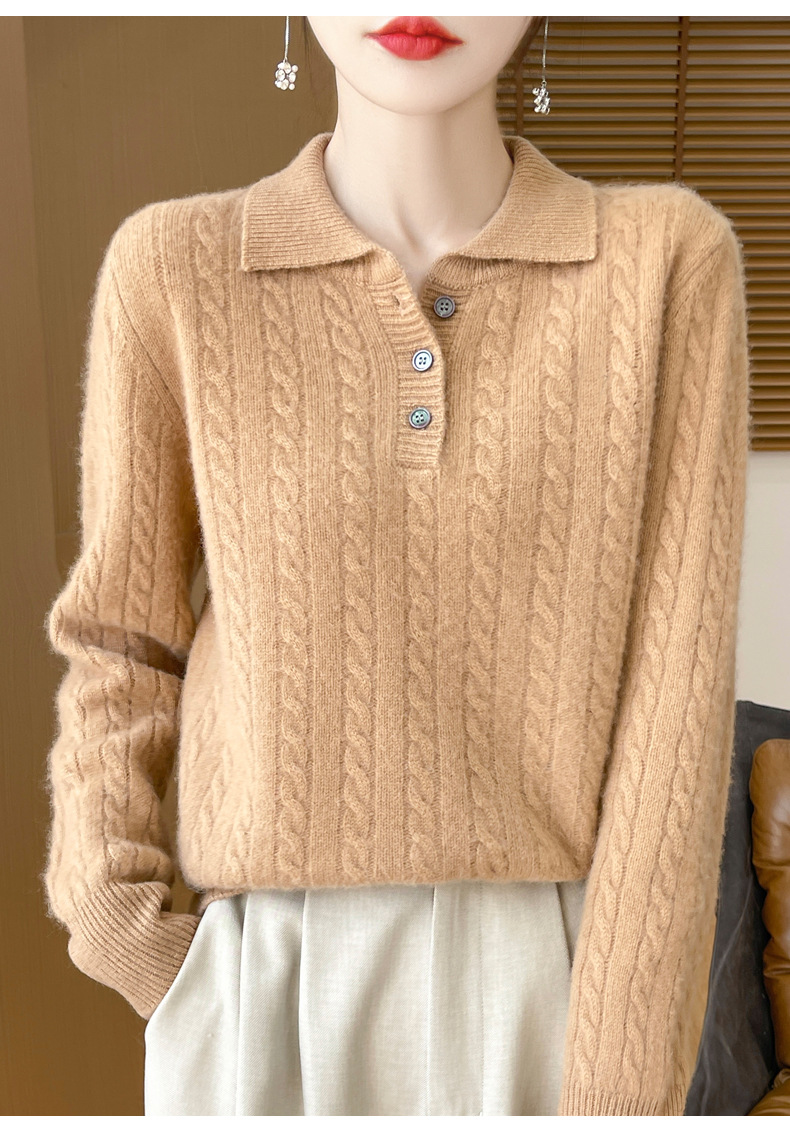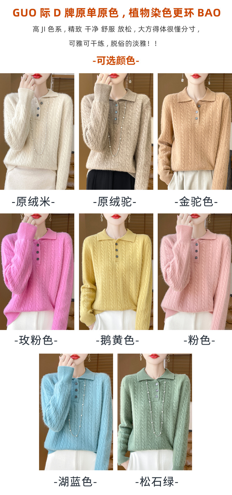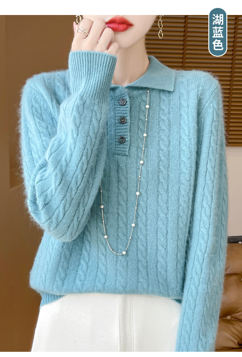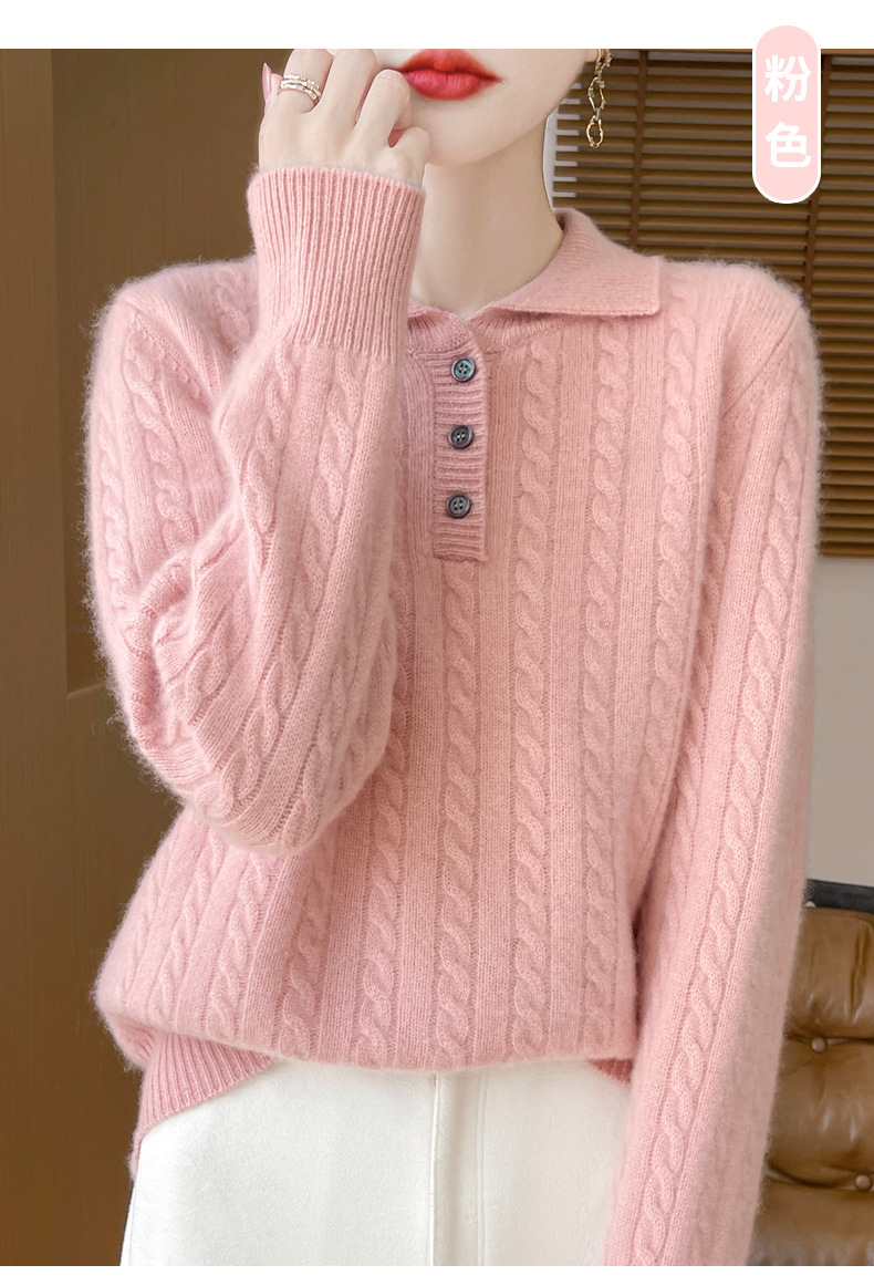 秋冬の新商品の純色のウールのシャツのPOLO襟のセーターの女性は花を捻って厚い外を着て上着を着ます。