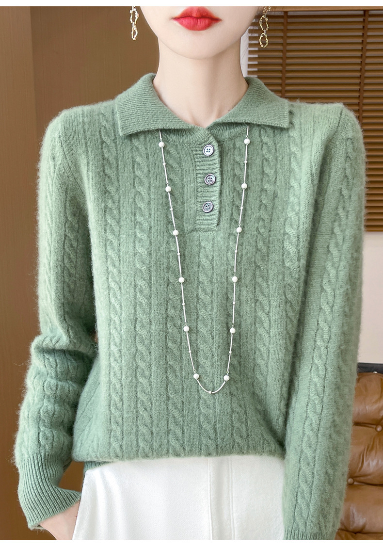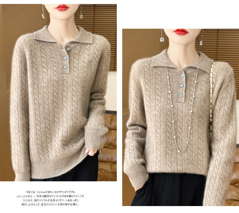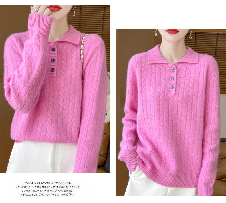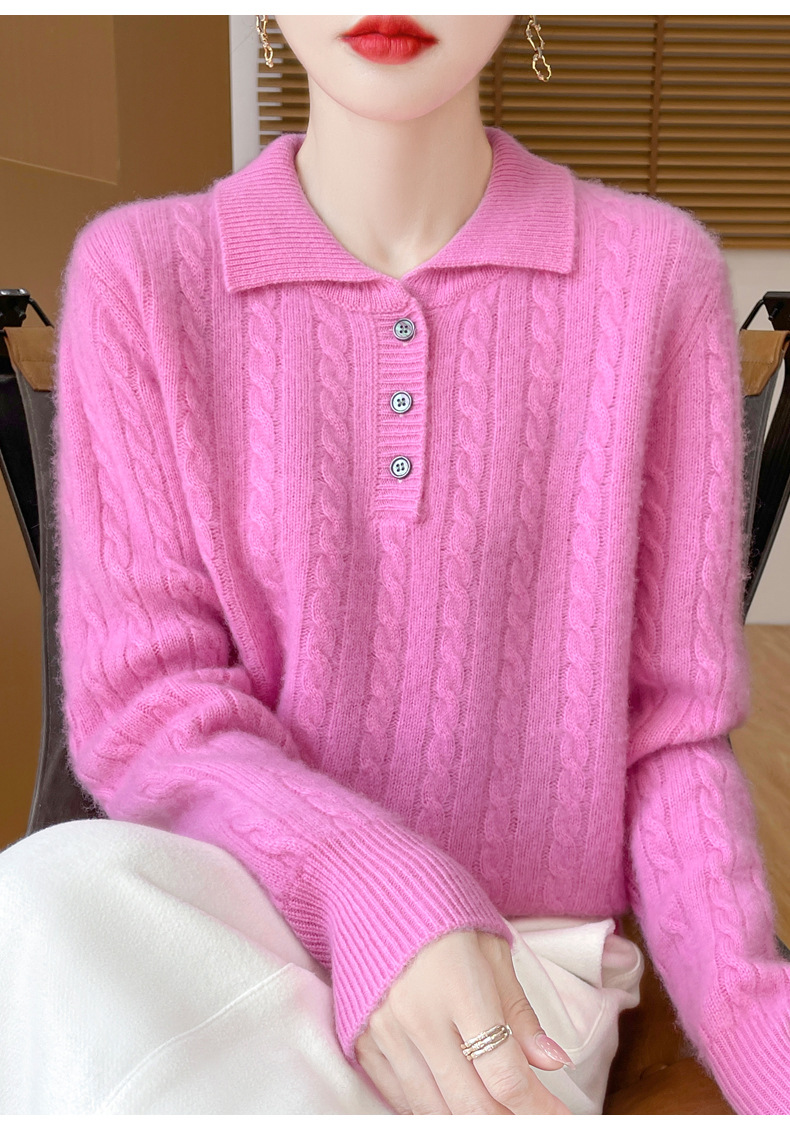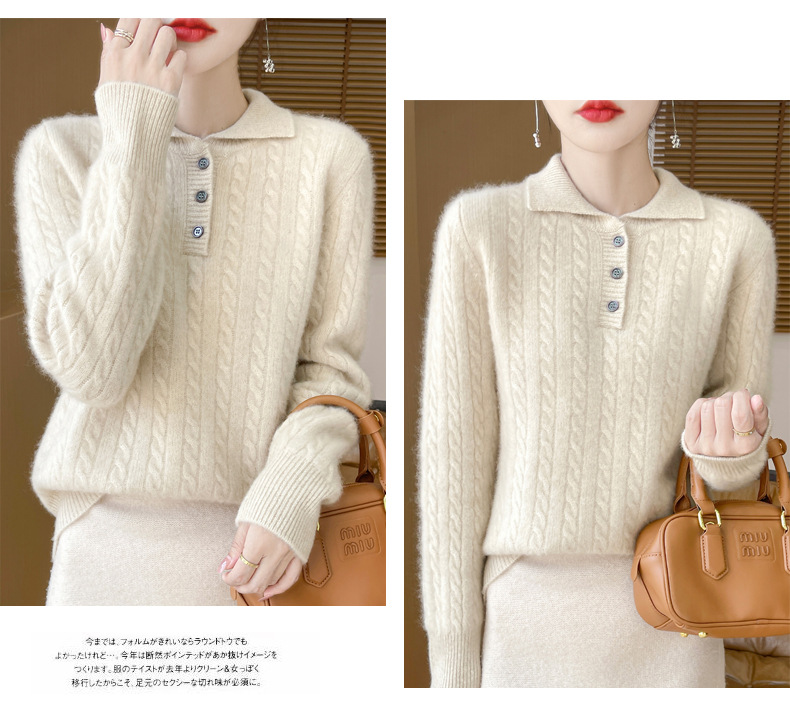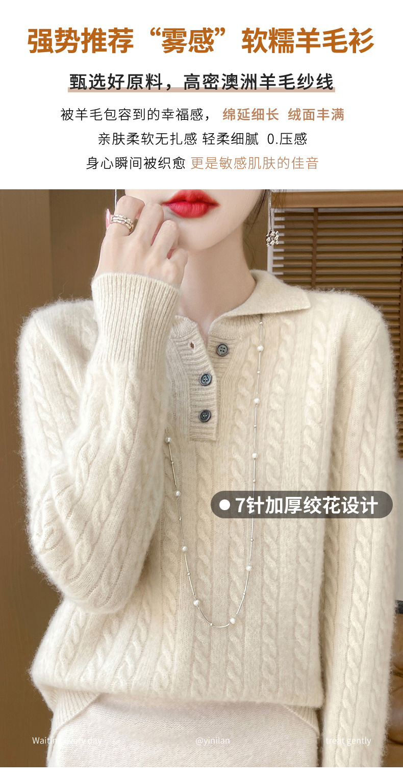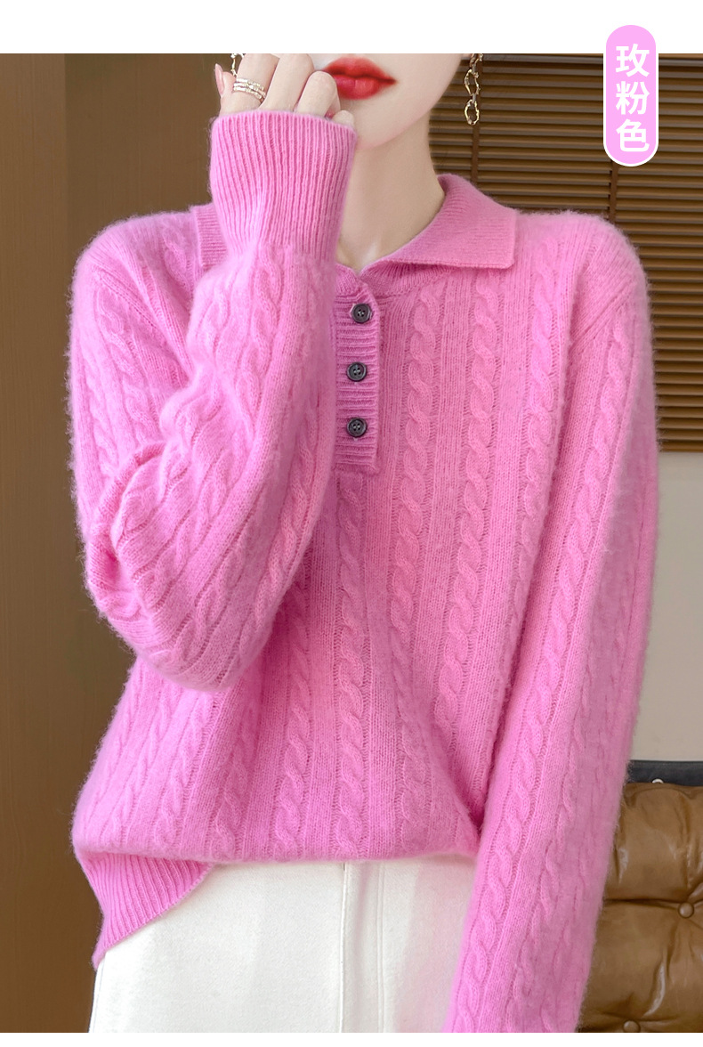 秋冬の新商品の純色のウールのシャツのPOLO襟のセーターの女性は花を捻って厚い外を着て上着を着ます。
