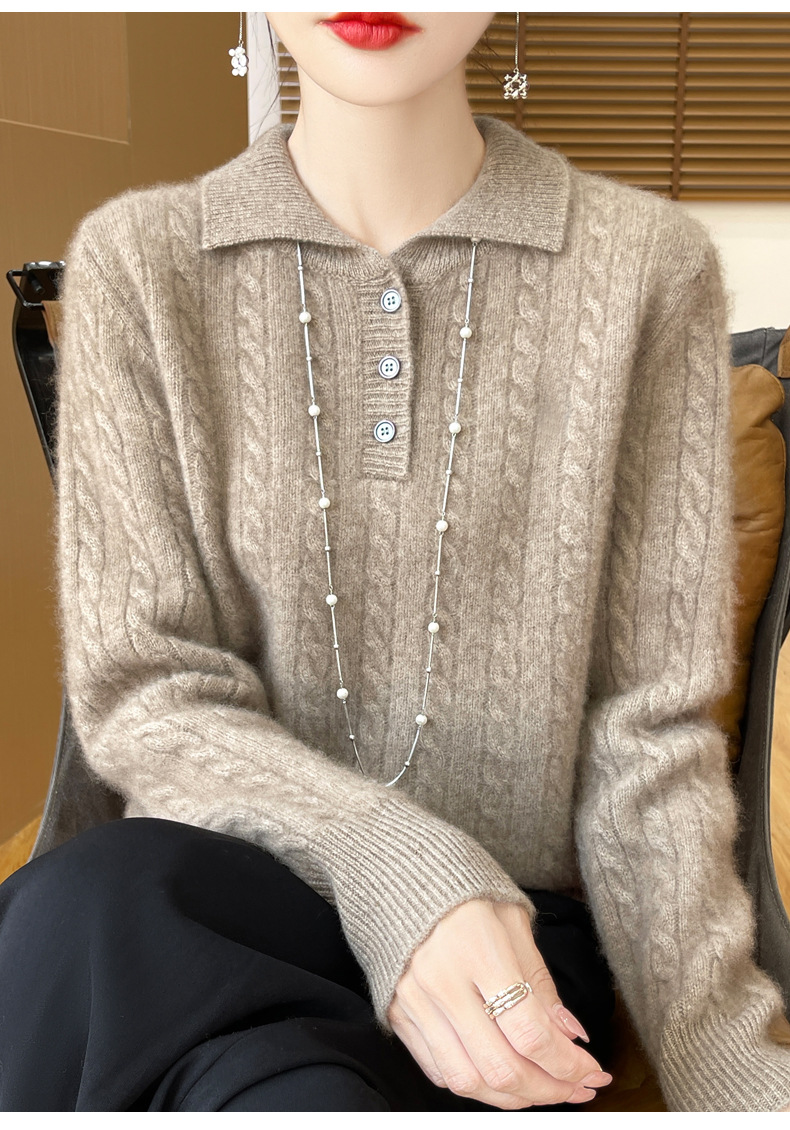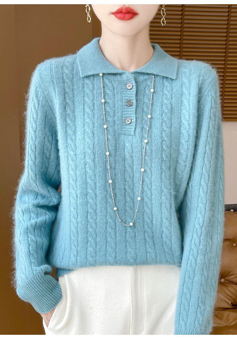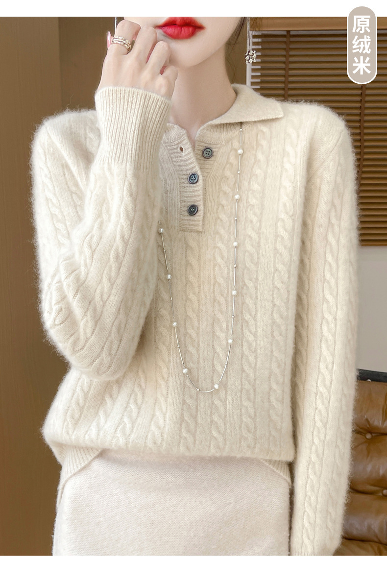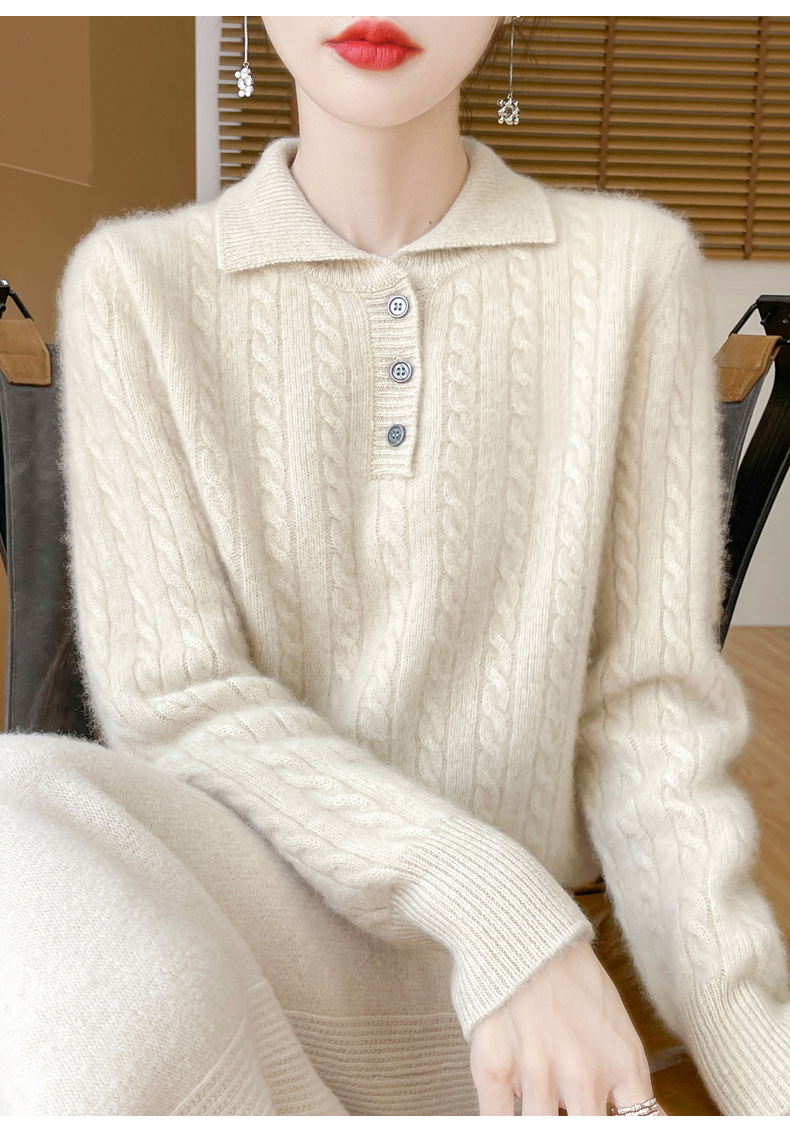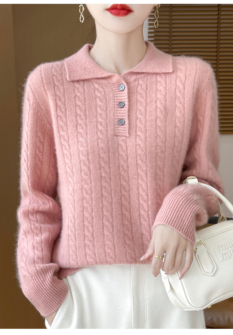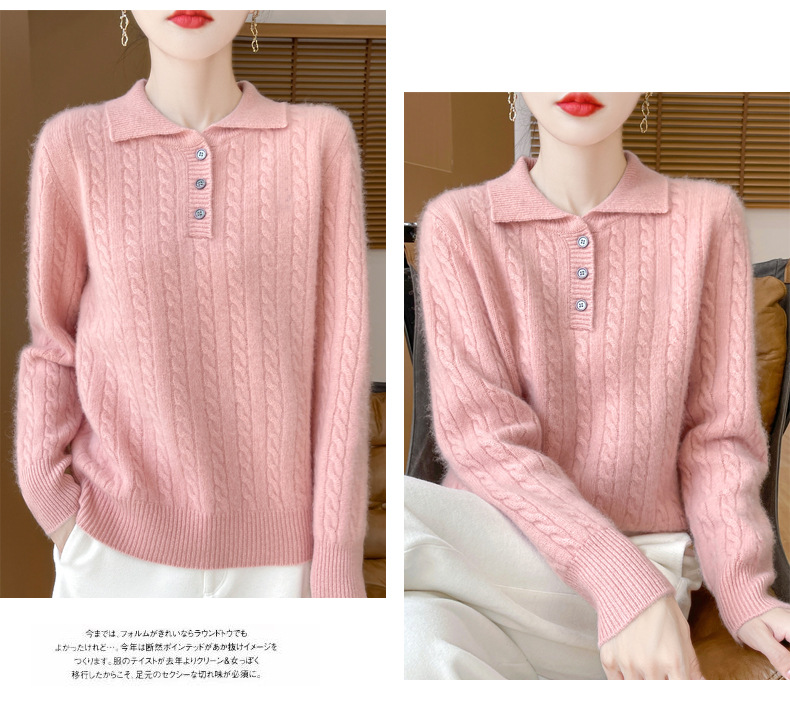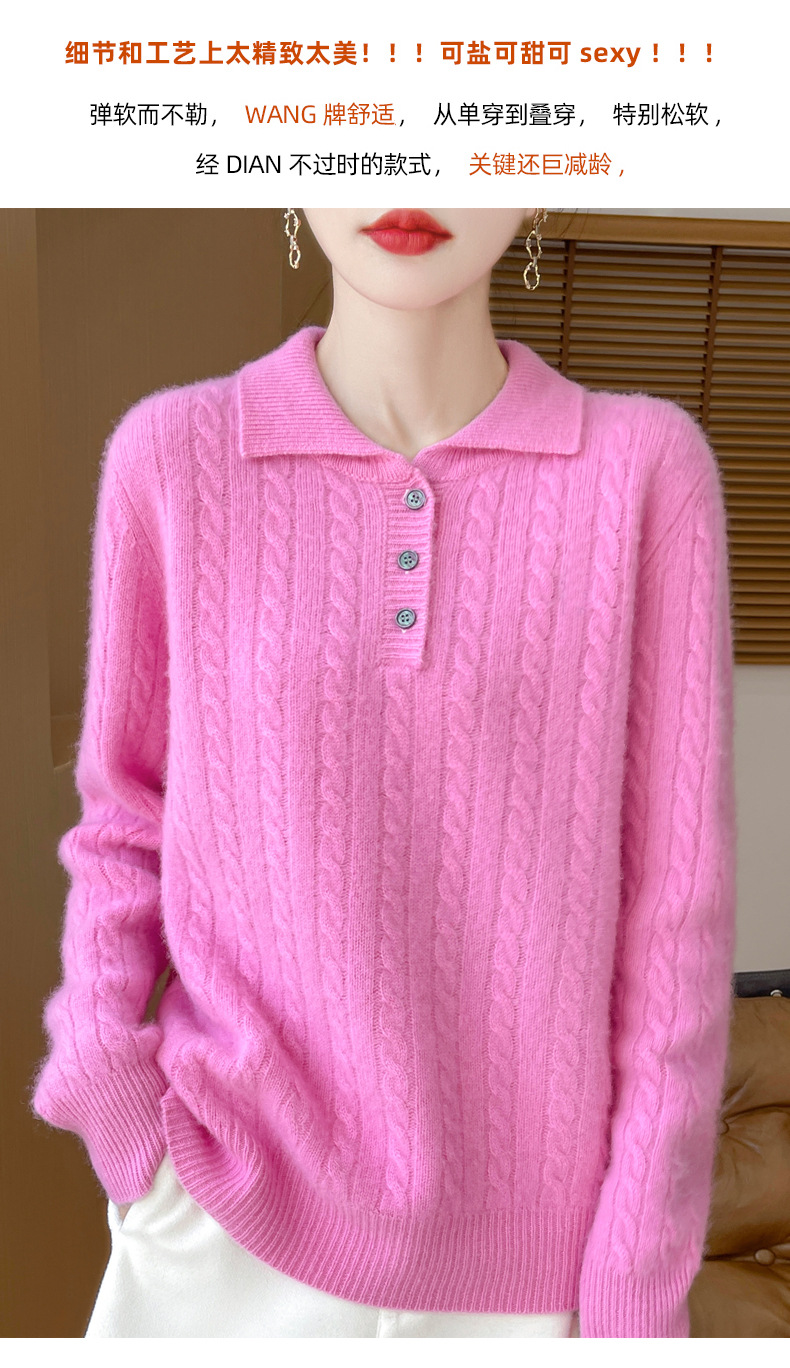 秋冬の新商品の純色のウールのシャツのPOLO襟のセーターの女性は花を捻って厚い外を着て上着を着ます。