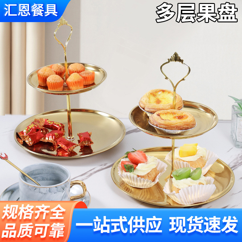 メーカー卸売りステンレス多層果物皿ケーキ棚果物棚菓子棚間食皿客間ホテル金色