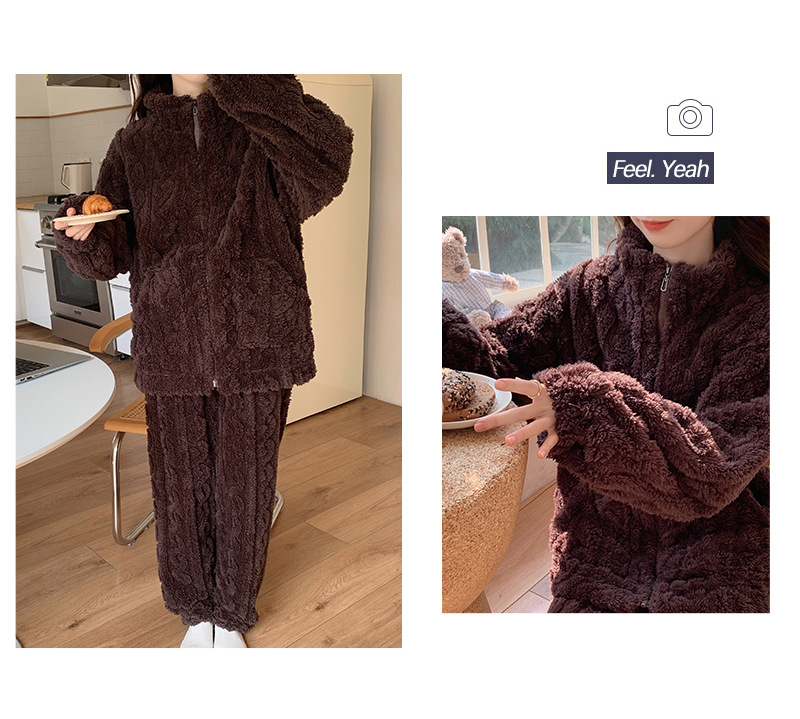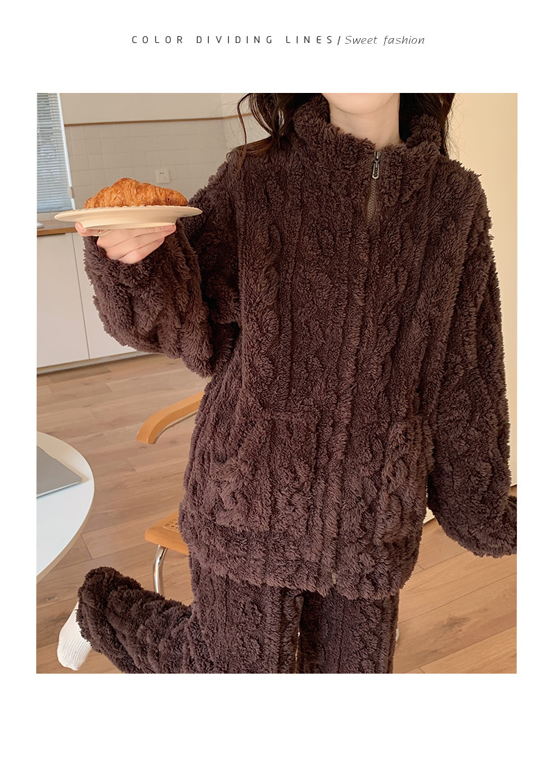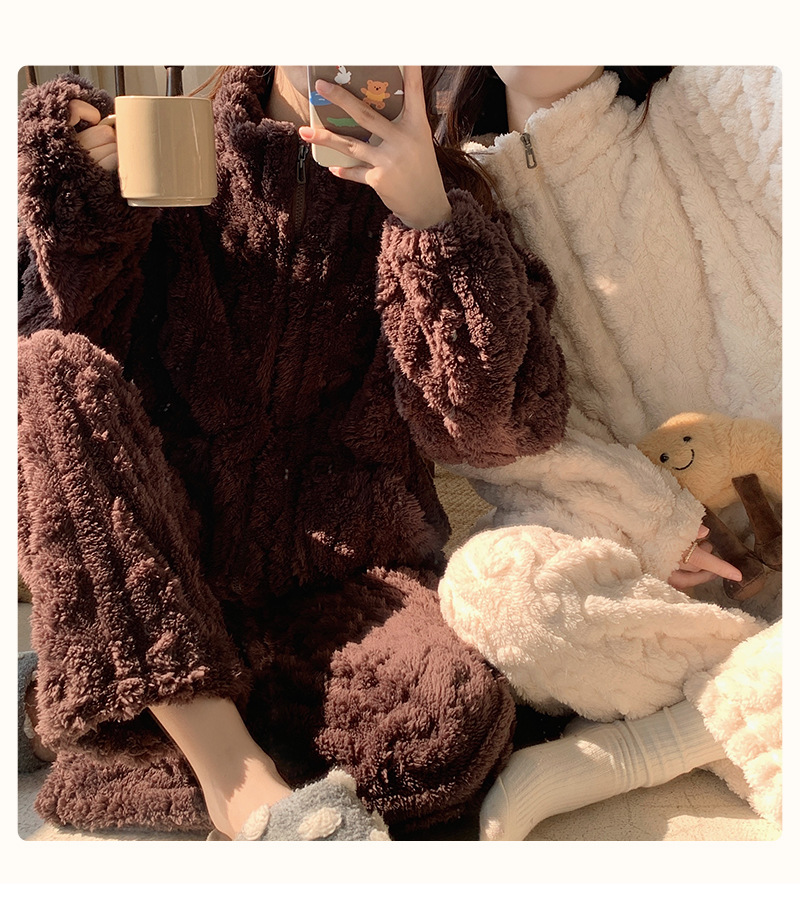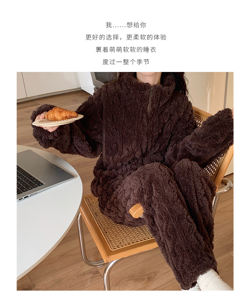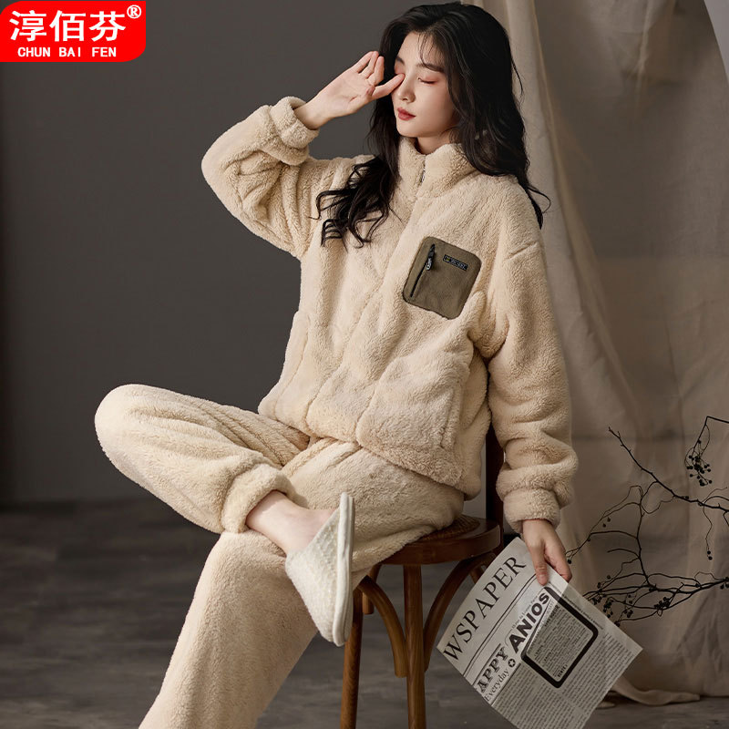 拉链款睡衣女秋冬季珊瑚绒长袖2025年新款加厚加绒家居服两件套装