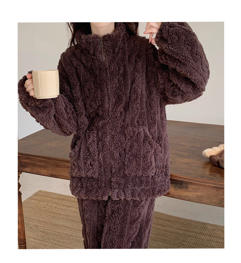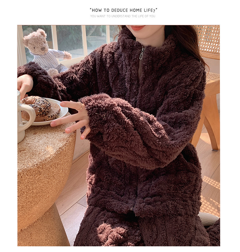 韓国版ins気質立襟爆珊瑚絨毛パジャマ女性秋冬はぬいぐるみを厚くして家の服のスーツを着ることができる