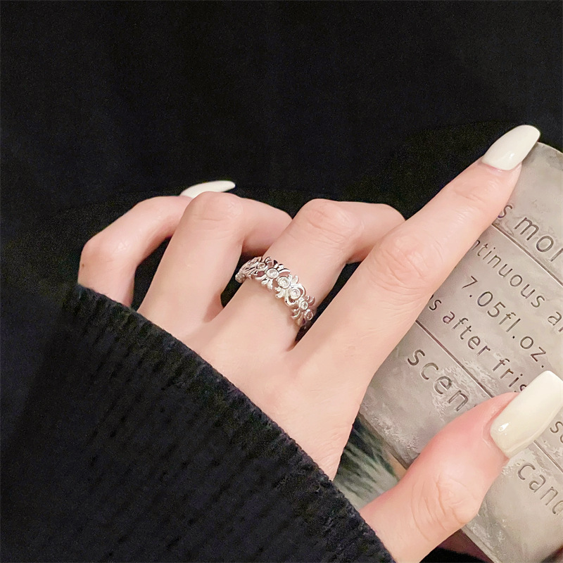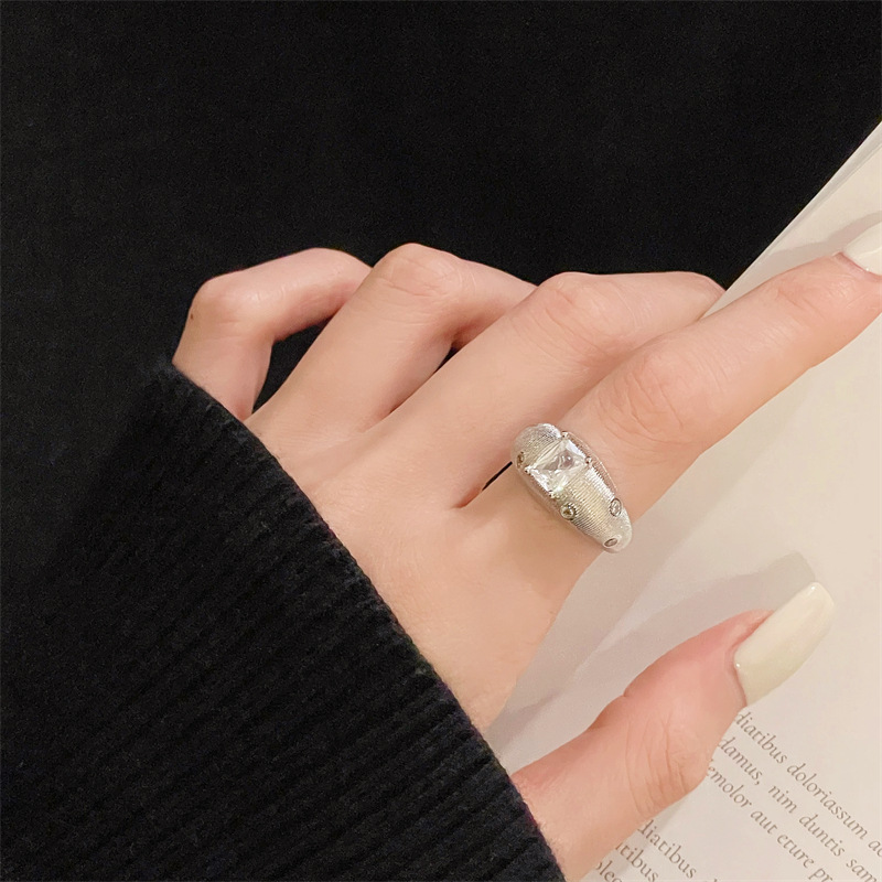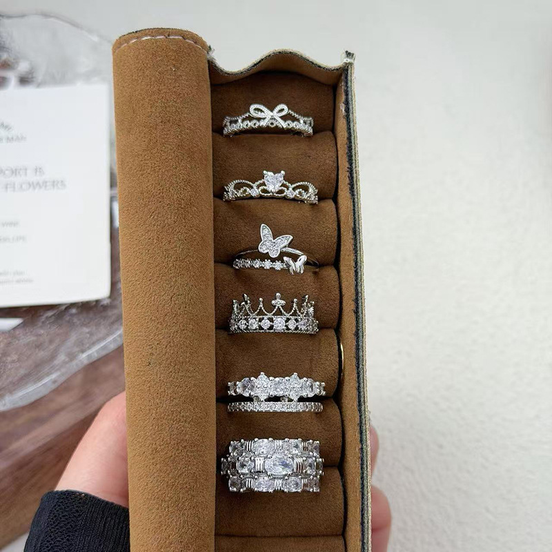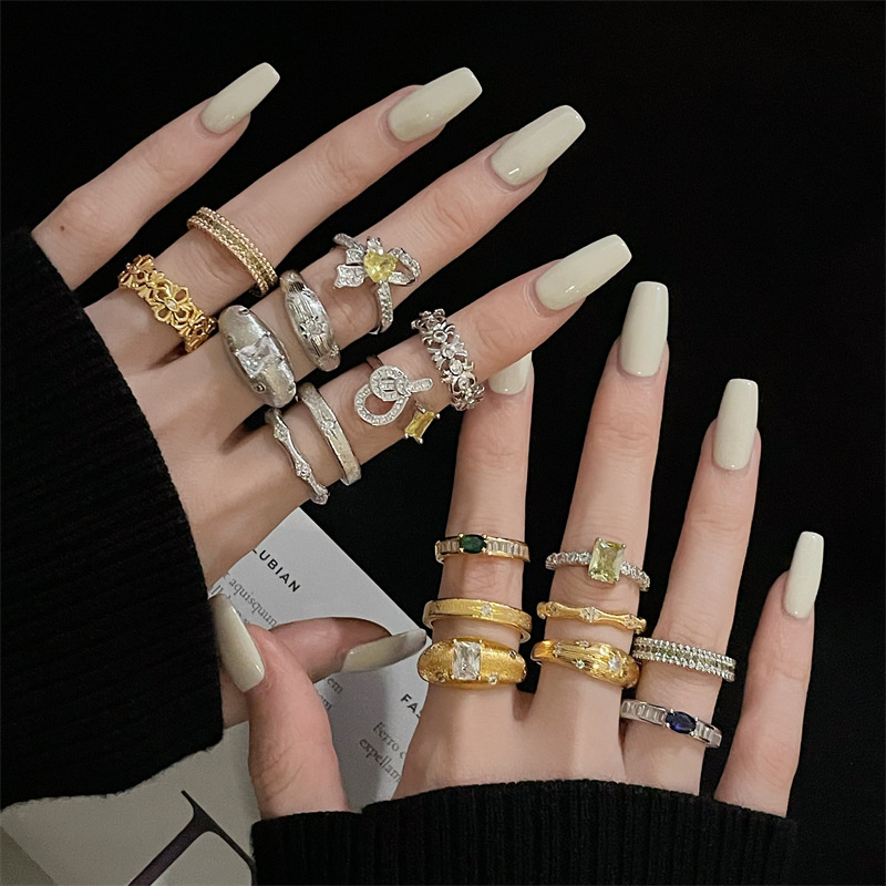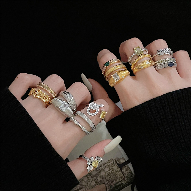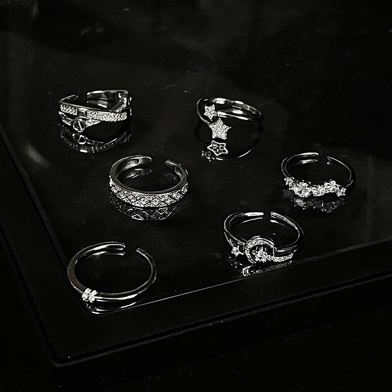 シルバーカラーリングジルコンオープンリングリングセット女性冷たい风気质カップルリングファッション个性食指戒潮