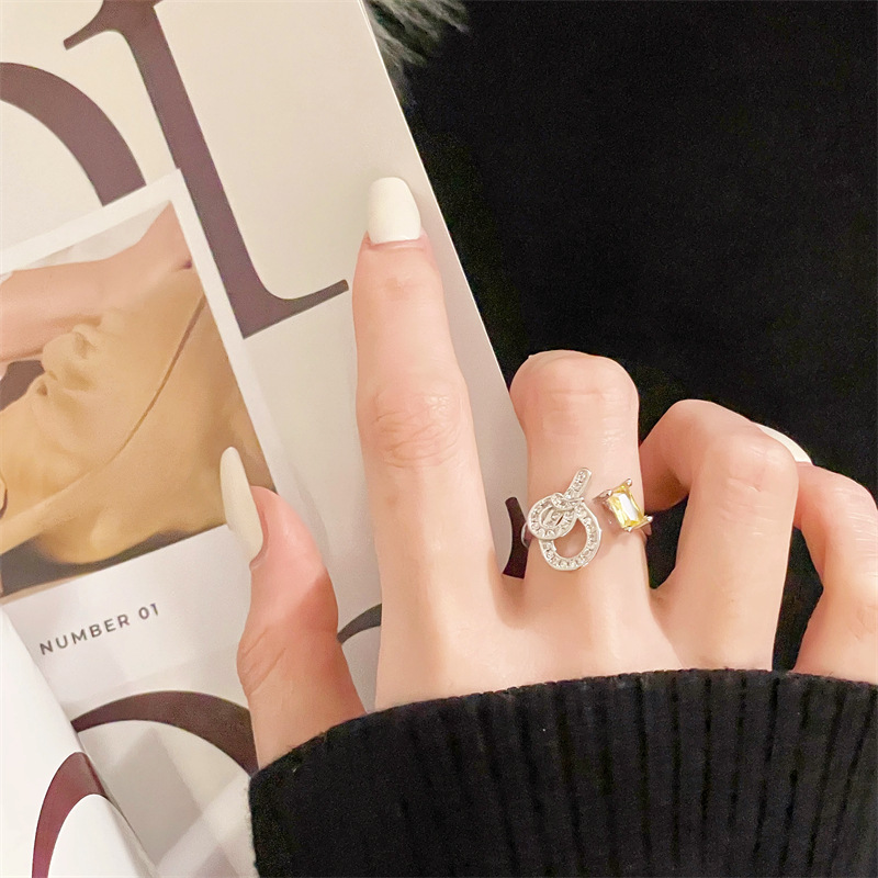 クロスボーダー卸売 ニッチデザイン インス風 シンプルで高級感のあるジルコニア付きオープンリング 女性用