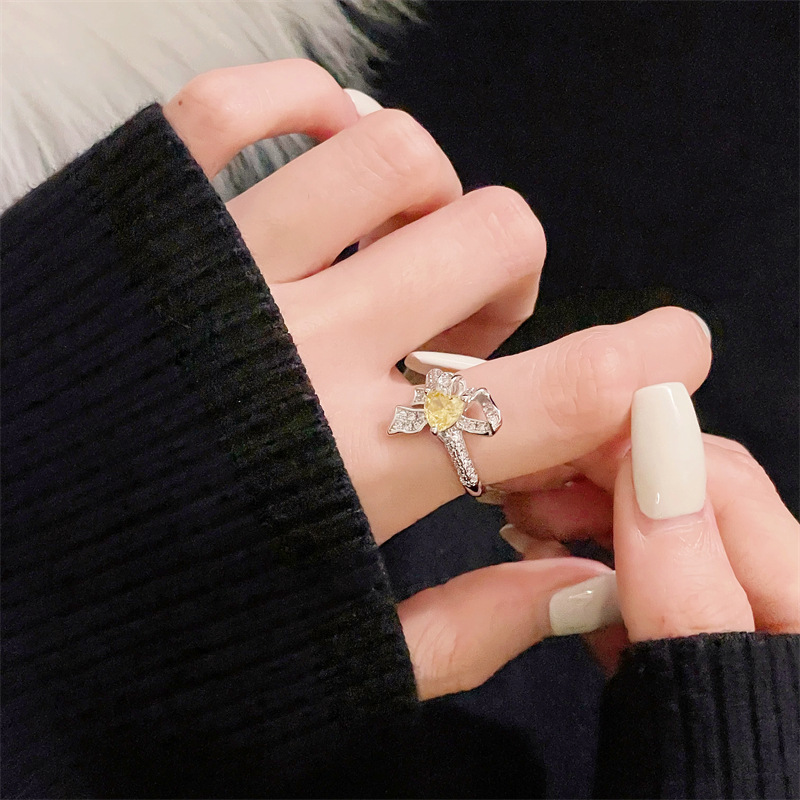 [ソフトハートリング] ピンクダイヤモンドラブニッチデザインハイエンドオープンリングパーソナライズされたソーンスタッキングリング女性用