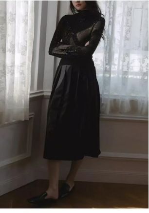 2025年新品边半高领薄纱打底衫女网纱长袖内搭春新款提花蕾丝上衣