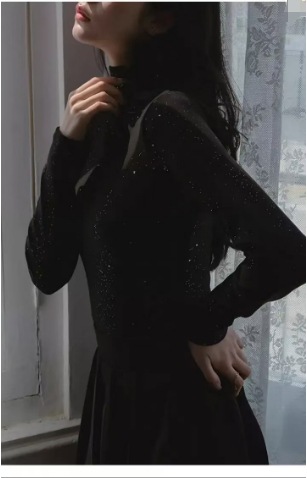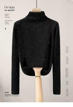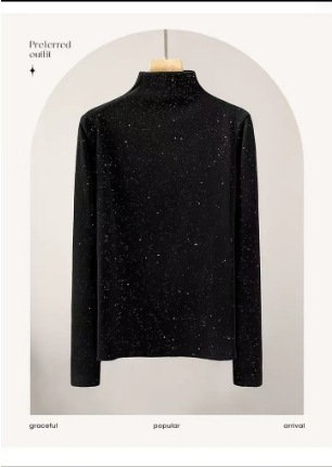 半高领亮片德绒打底衫2025年秋冬新款气质显瘦黑色打底衫内搭秋冬