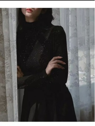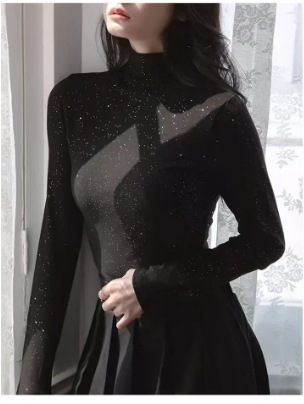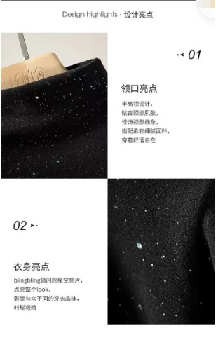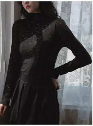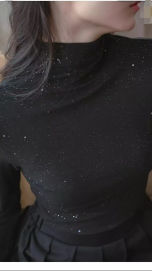 半高领德绒星空打底衫女亮片内搭2025秋冬新款亮闪闪上衣黑色T恤