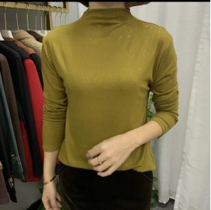 加绒半高领亮闪闪长袖T恤女2025新款洋气内搭保暖打底衫上衣