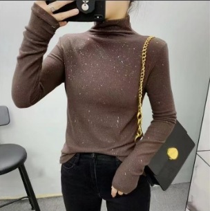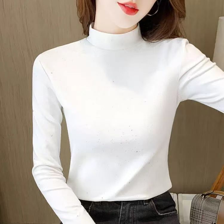 徳絨毛の半高襟の底のシャツの女性の冬のきらきらと光る保温の新型の厚い長袖のtシャツの上着は身を修めるのがやせています。