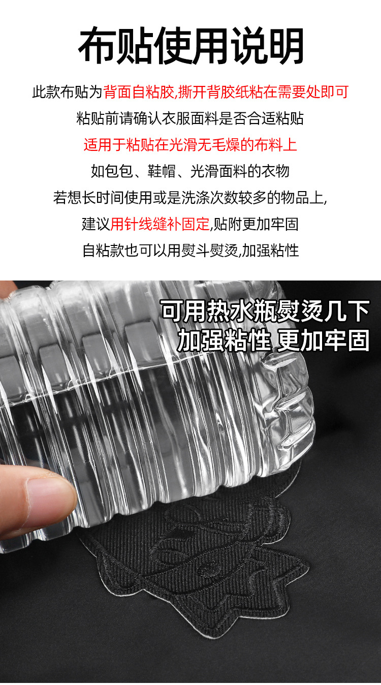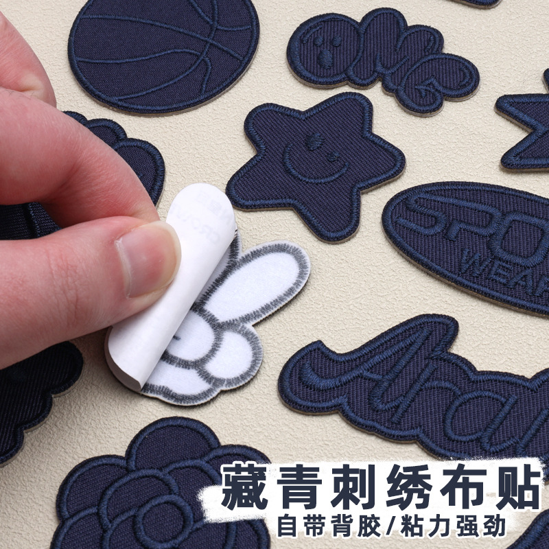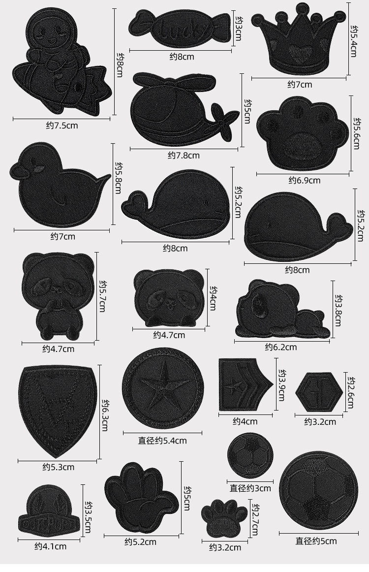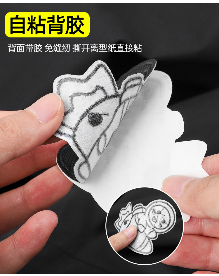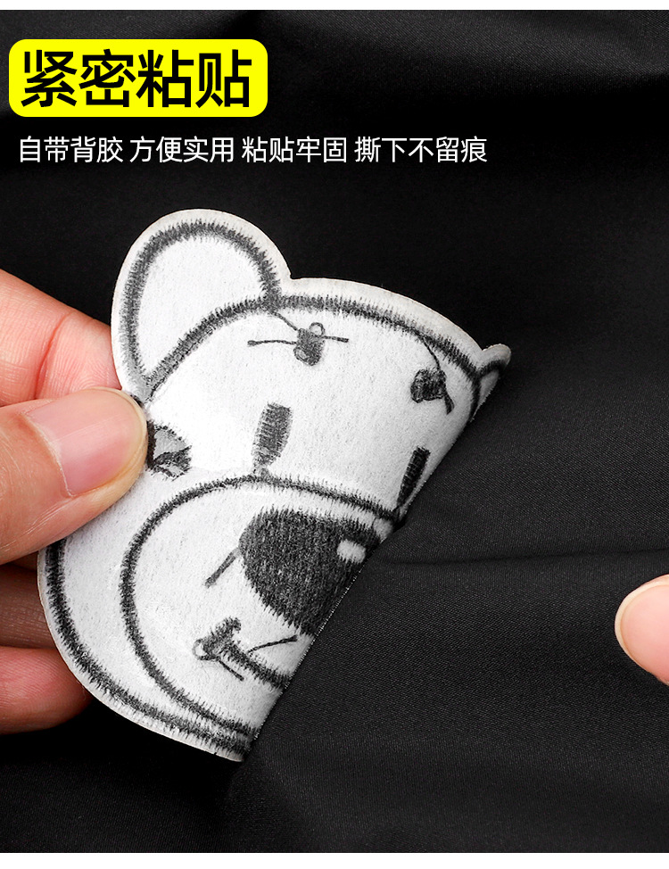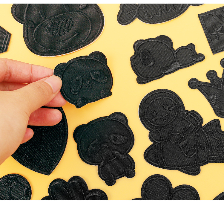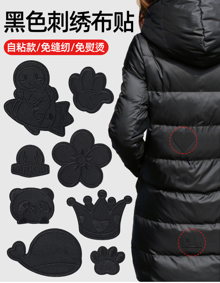 刺绣补丁贴强力自粘衣服羽绒服破了修补修复神器免缝黑色图案布贴