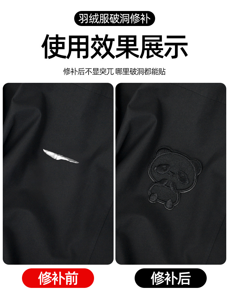 羽绒服修复补丁贴免缝自粘黑色刺绣布贴儿童衣服破洞无痕修补贴片