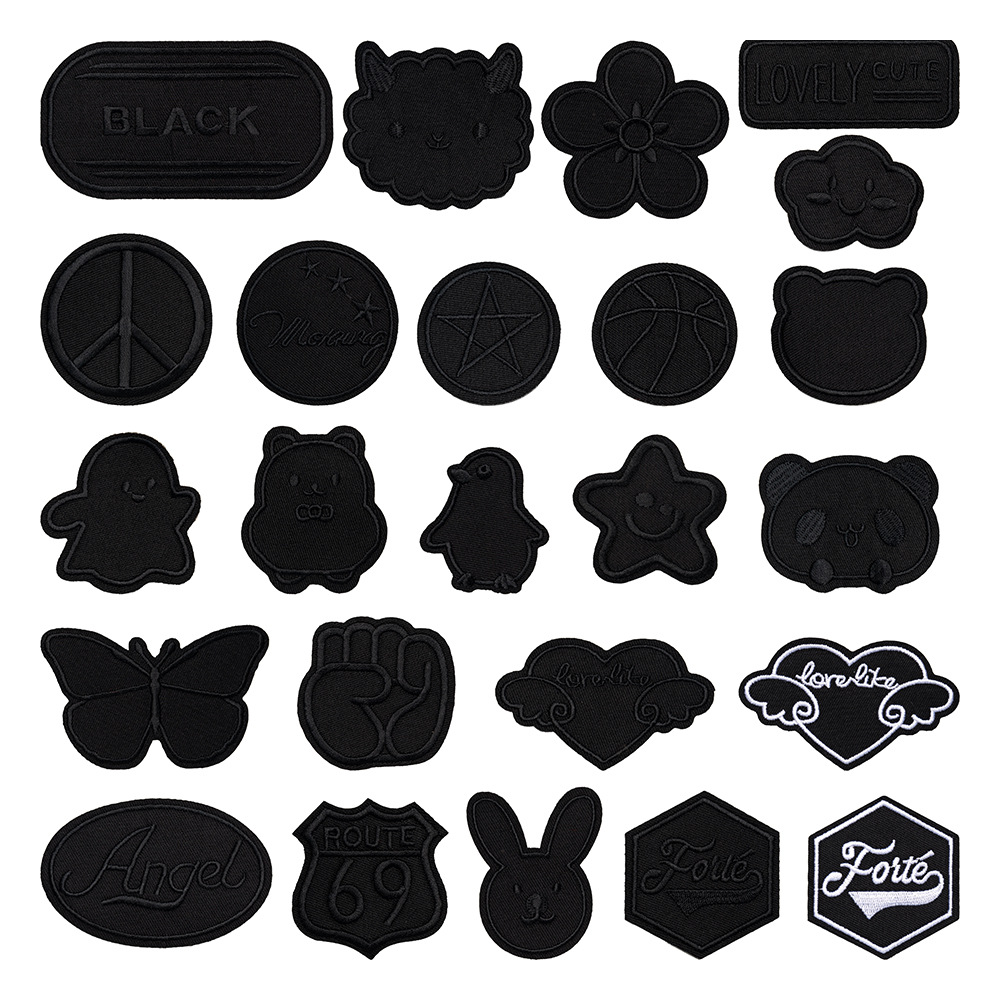黑色自粘胶免缝刺绣布贴服装辅料羽绒服diy破洞衣服补丁电脑绣花