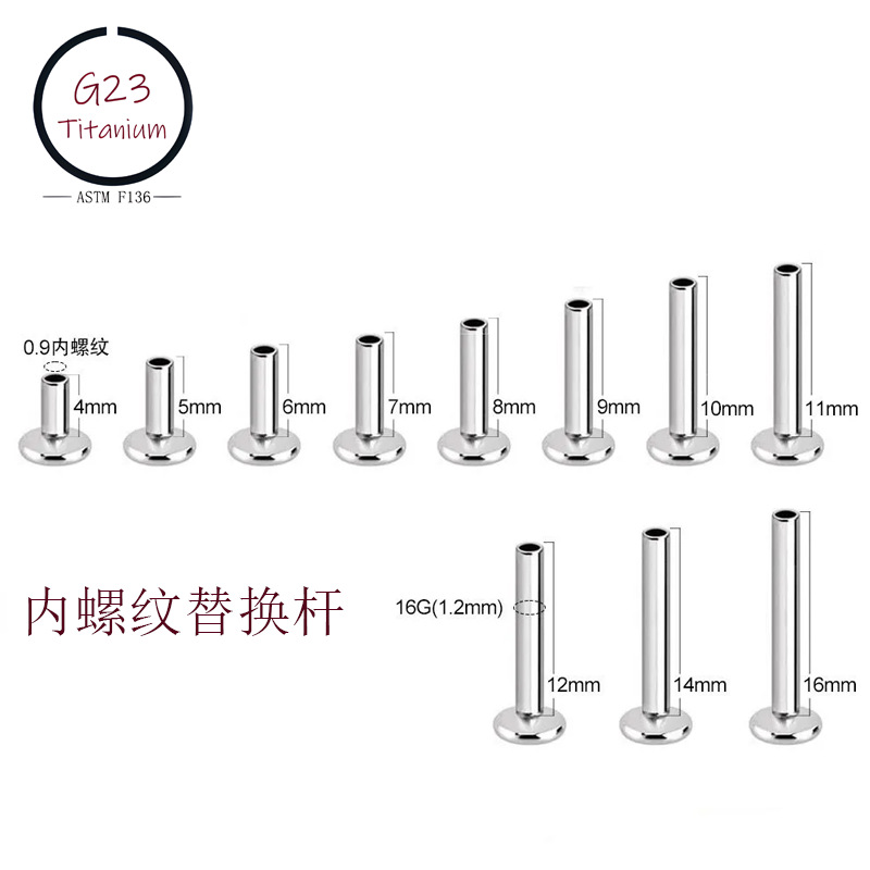F136チタン外ねじ舌釘唇釘耳骨釘耳釘唇釘G23チタン合金穿刺アクセサリー部品スポット