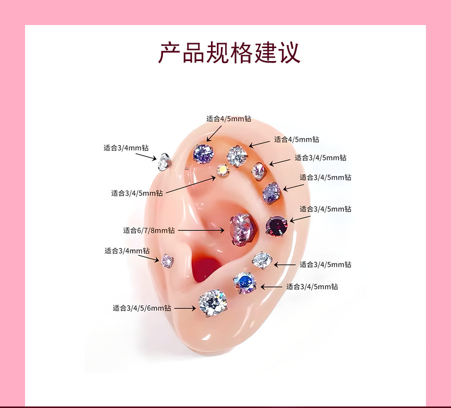 Chaoshang F136 チタン合金埋め込みネイルプレートリップネイルドリル象嵌チェコダイヤモンド G23 チタン合金ボディピアスジュエリー