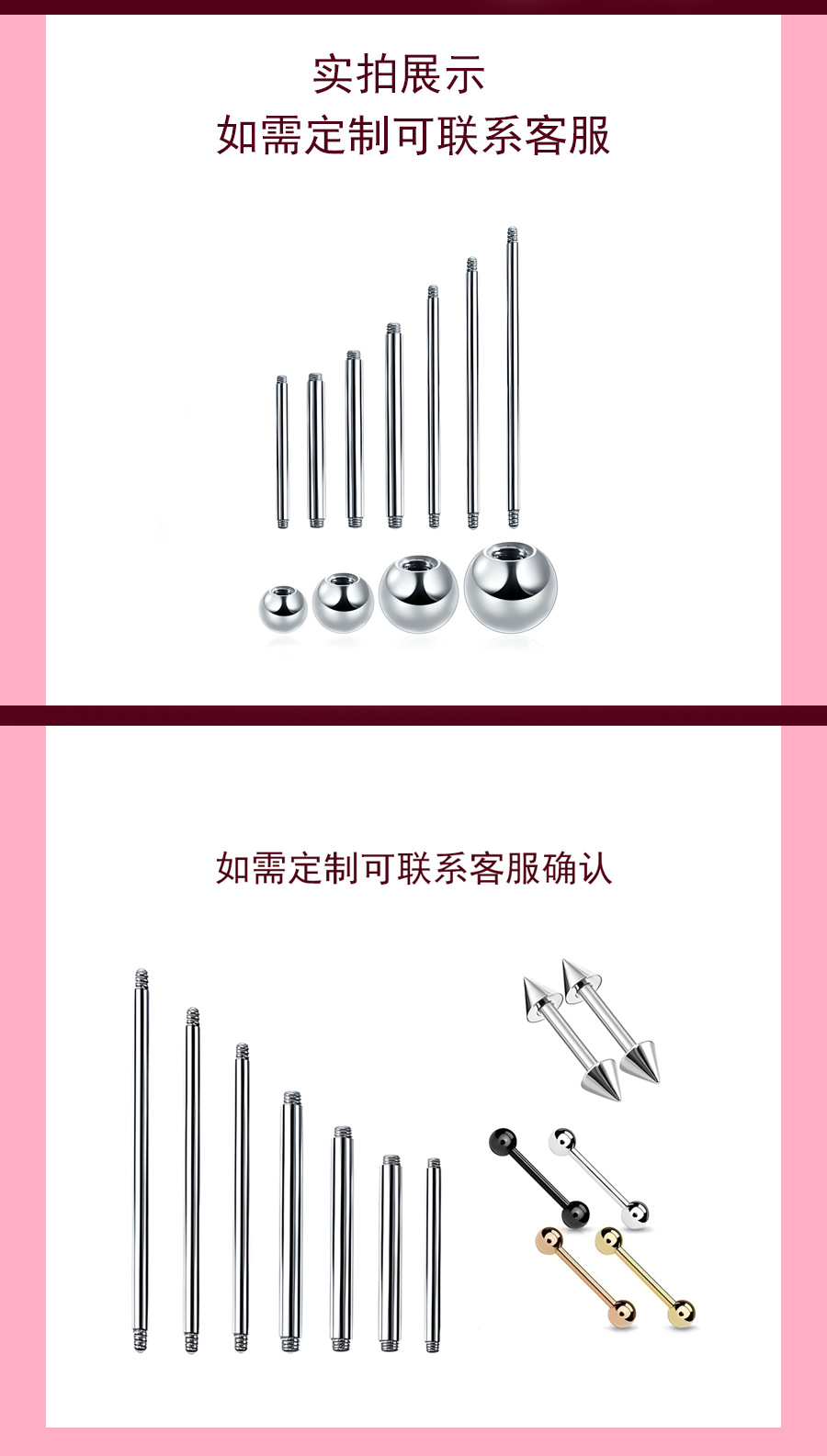美饰尔Gr23钛合金外牙直杆舌钉穿刺饰品配件外螺纹耳杆替换杆批发