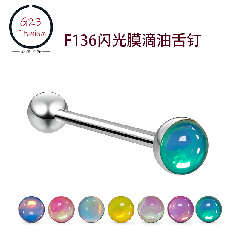潮尚F136閃光膜滴油舌釘多色グラデーションG23チタン合金人体穿刺アクセサリー舌アクセサリー