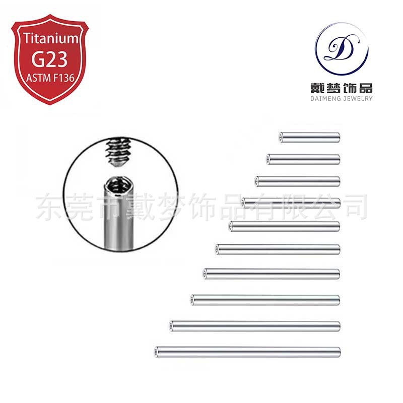 F136钛耳钉内螺纹双头直杆耳桥杆G23钛合金舌钉杆diy穿刺饰品配件
