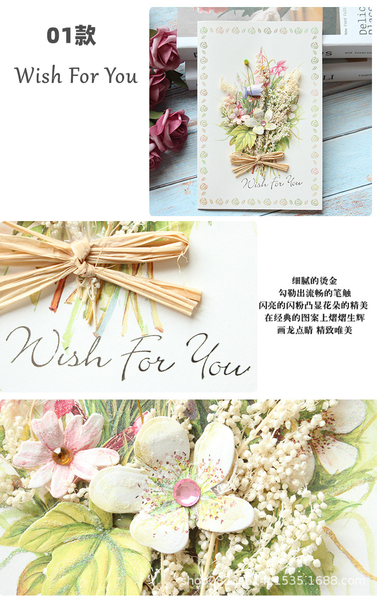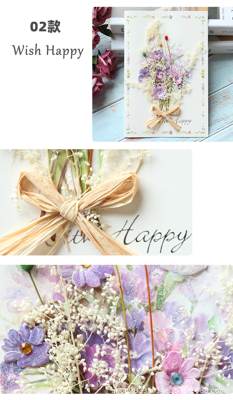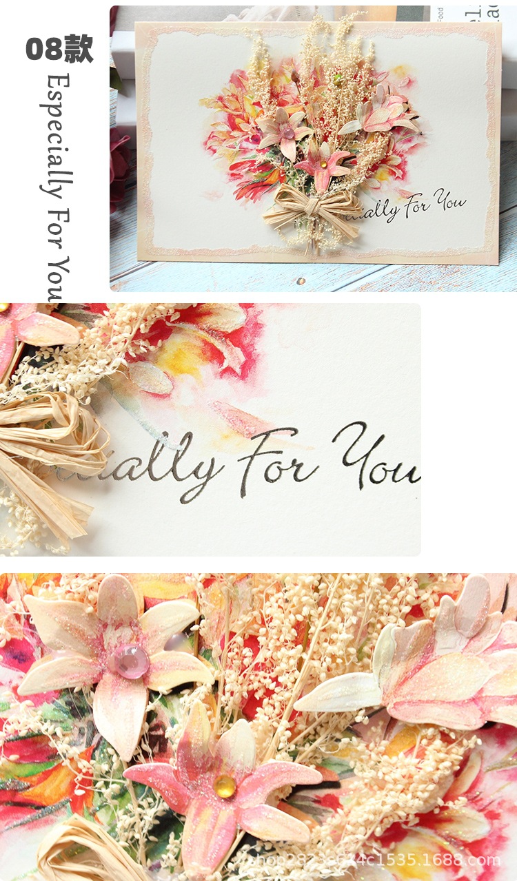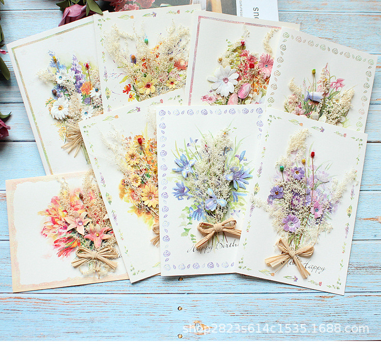 辰陽文化グリーティングカードは花を見るとdiy創意ドライフラワー誕生日カード立体造形小カード祝福カードが好きです