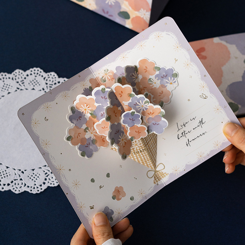 3D立体花束グリーティングカード 感謝 クリスマス クリエイティブ 高級感 祝福 誕生日 感謝 先生へのギフトカード