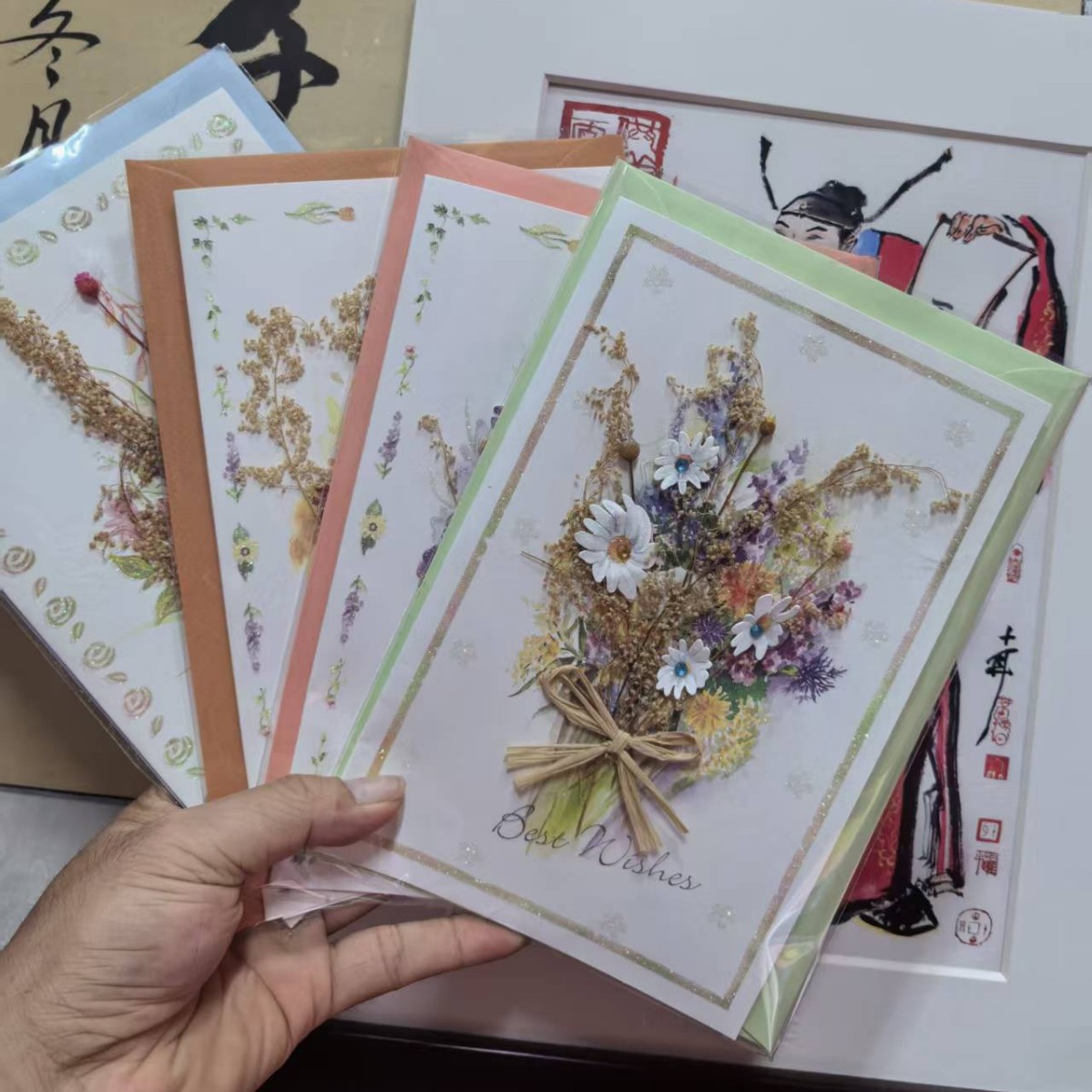 Insクリエイティブ手作りドライ花感謝グリーティングカード高級感誓いカードビジネス教師の日卒業グリーティングカード封筒付き