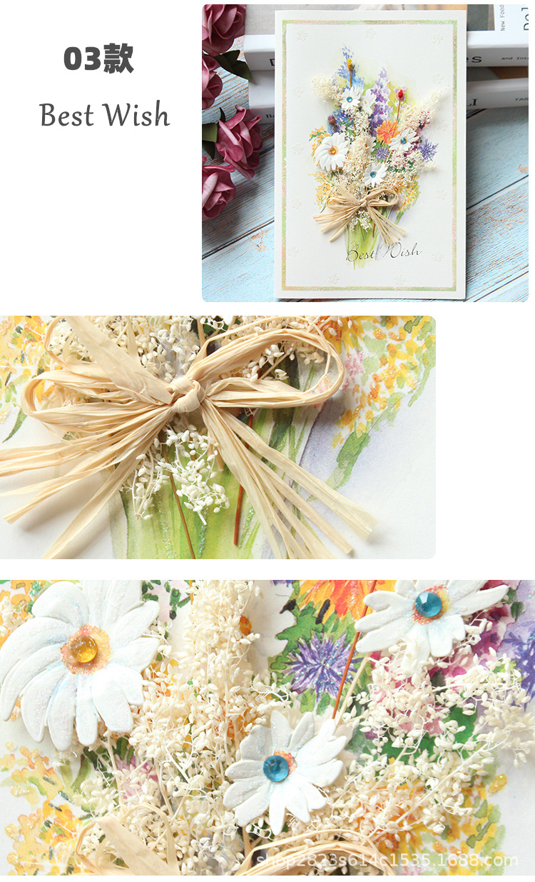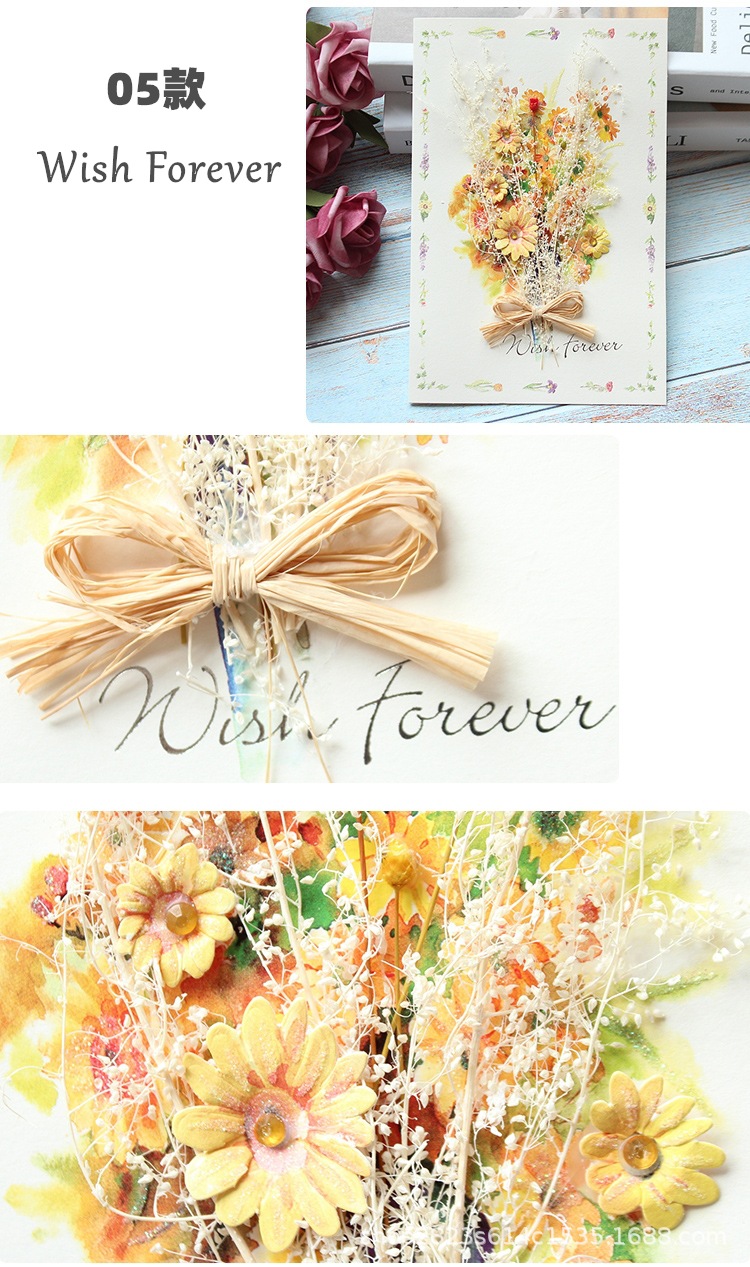 Ikono Shifeng グリーティングカード 立体デカール シックなドライフラワー 立体祝福カード 教師と子供のユニバーサルカード 誕生日カード