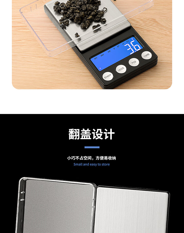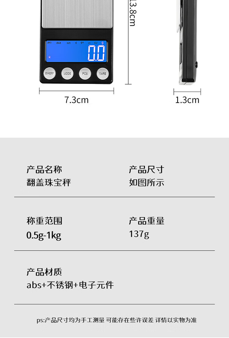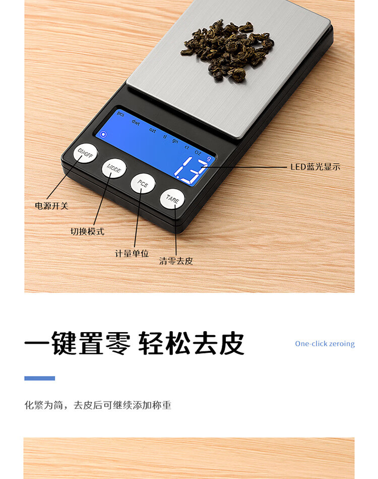 バイジェ精密ジュエリー秤ミニ電子ポケットは携帯家庭用キッチン秤の手のひらは1kg/0.1gと呼ばれている