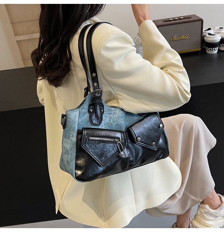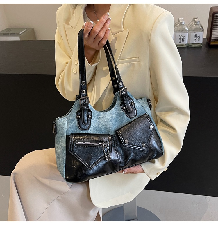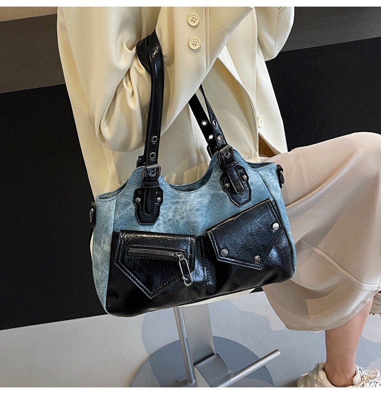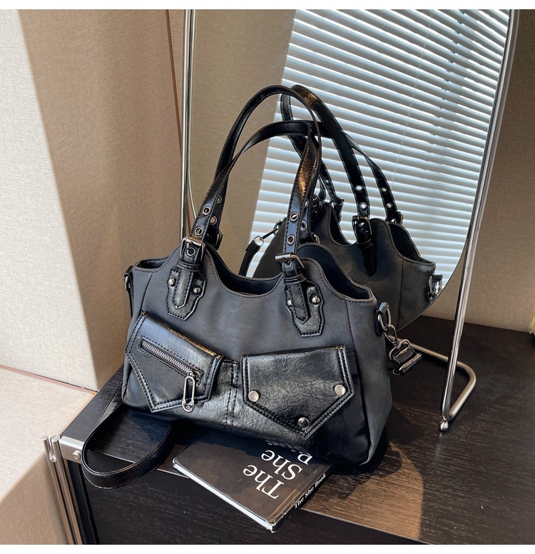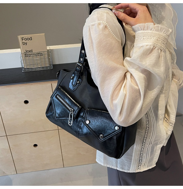 ヨーロッパとアメリカのファッションレディースバッグ 2025 新しいカジュアル個性トレンディなニッチドットリベットショルダー脇の下バッグトートバッグ
