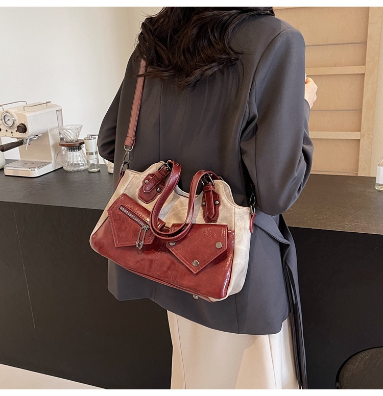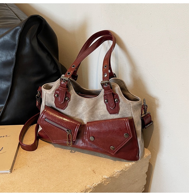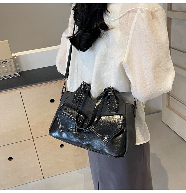 手提げ大容量バッグレディース2025春新作ファッション韓国風ファッションシングル肩斜め掛け洋気レトロトートバッグ