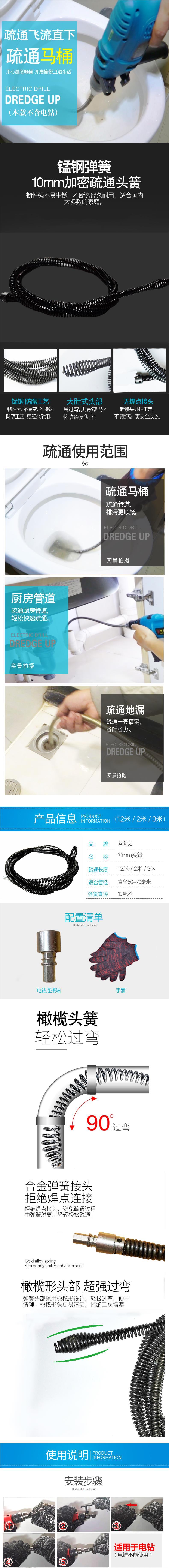 神器通通便器、下水道工具スプリングドリル専門10mmスプリング家庭用配管通通器