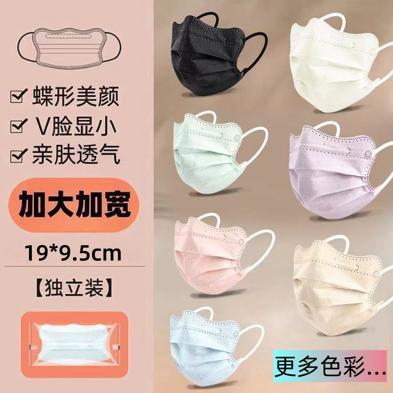 大版蝴蝶形一次性口罩女高颜值波浪形v脸口罩加大显脸小不勒耳