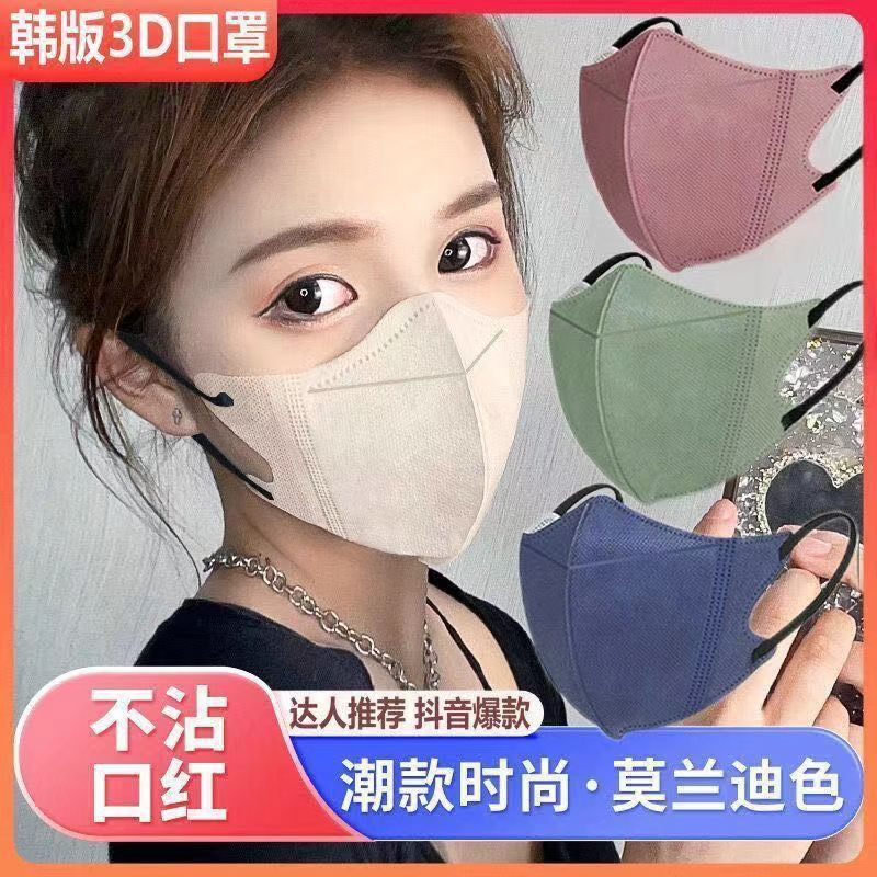 莫兰迪色一次性口罩3d立体三层防护高颜值女薄款透气显瘦显脸小