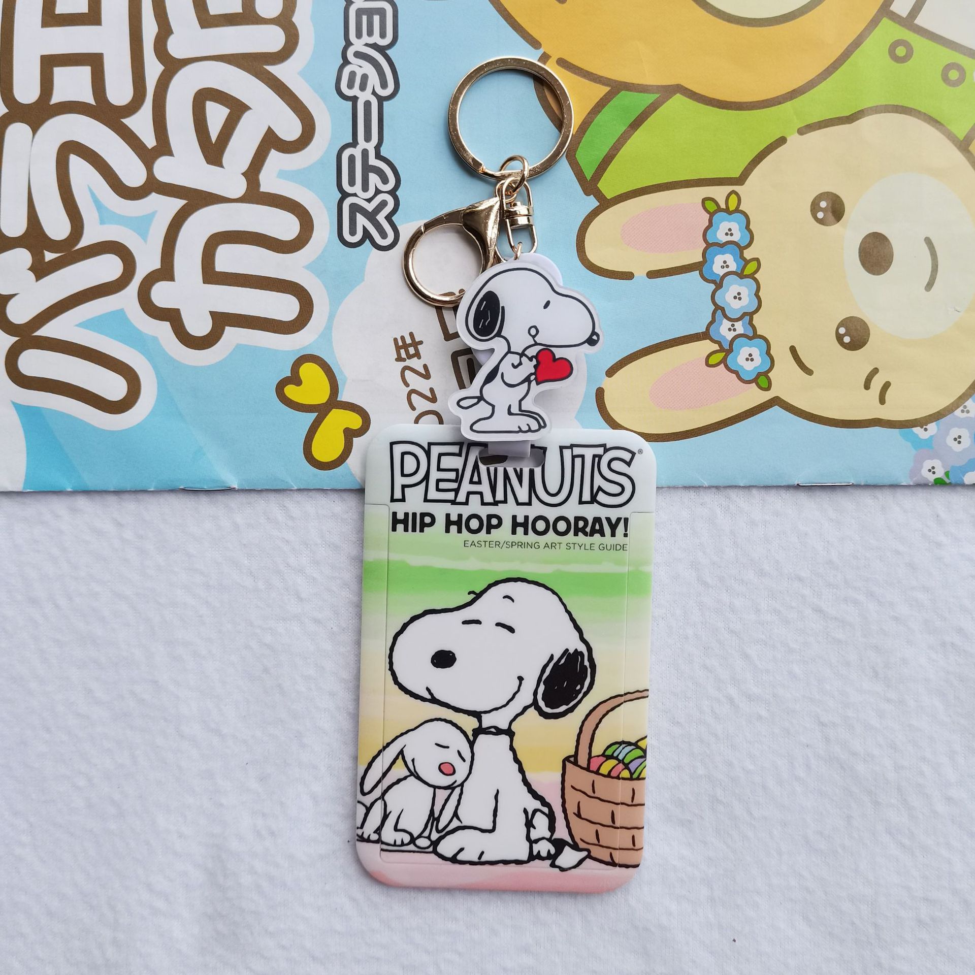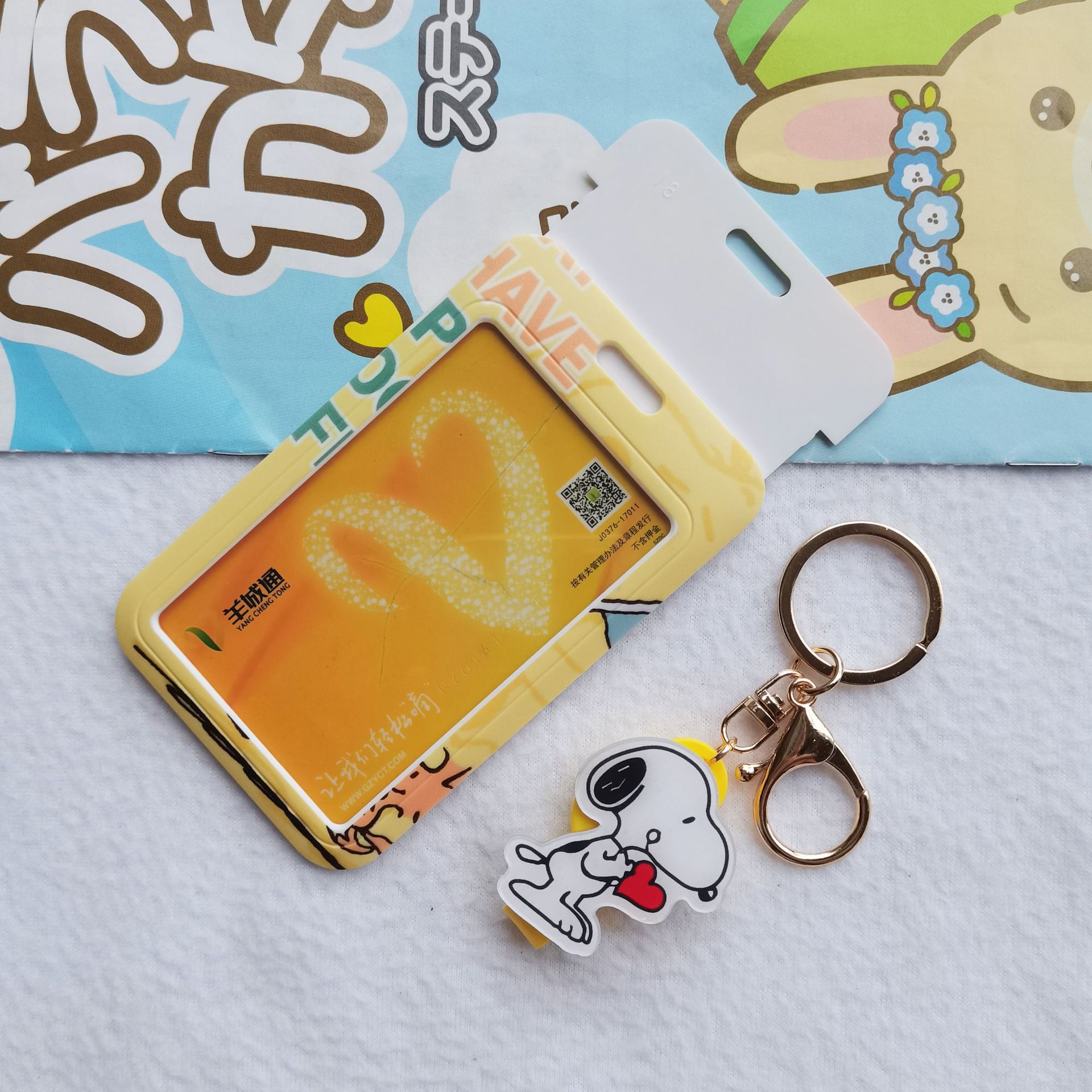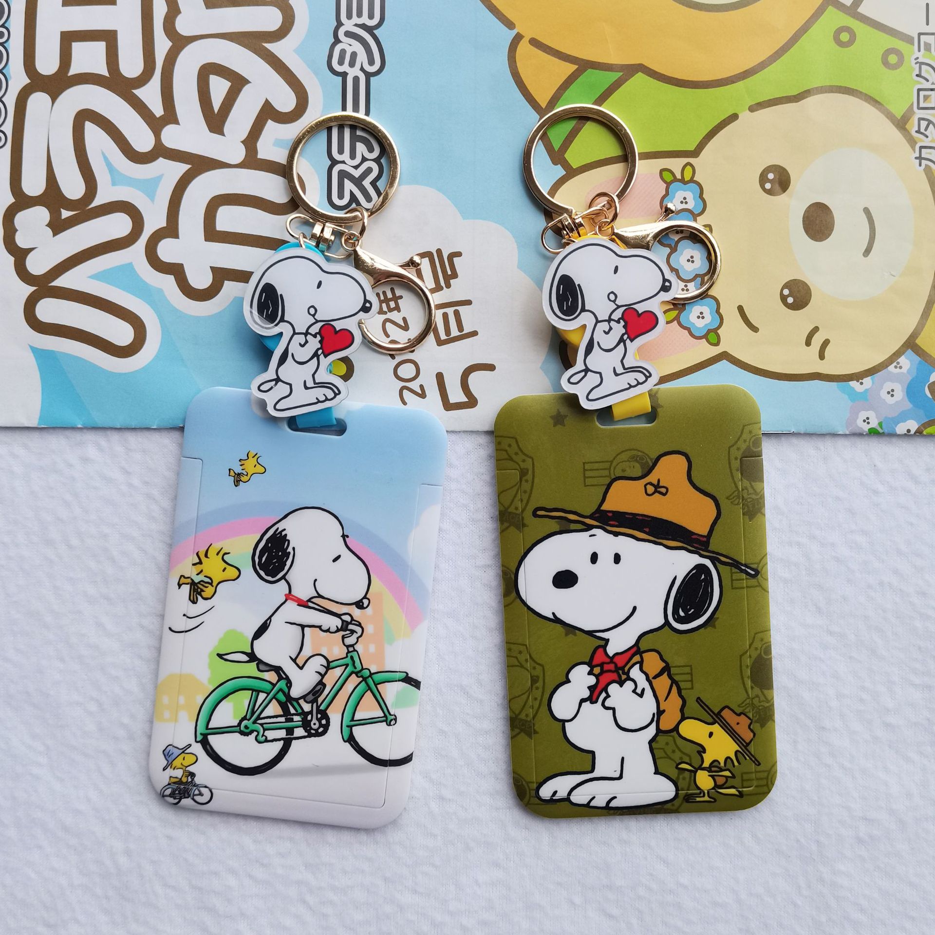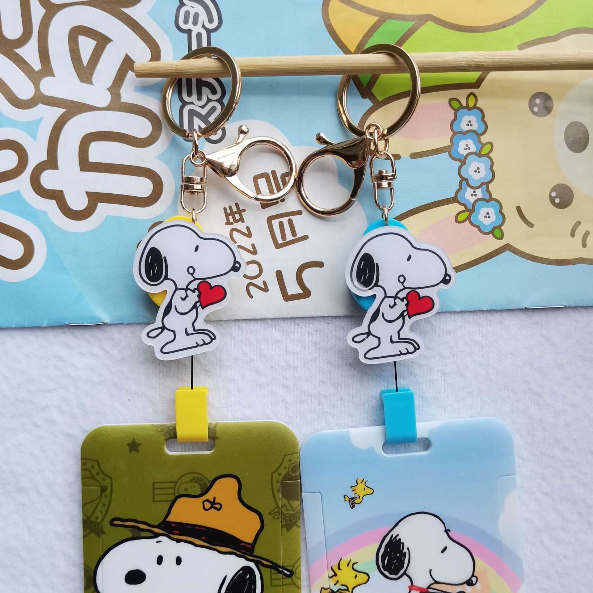 かわいいスヌーピー子犬伸縮しやすい割引証明書セット学生カード地下鉄バスカードセット仕事証明書セットストラップ