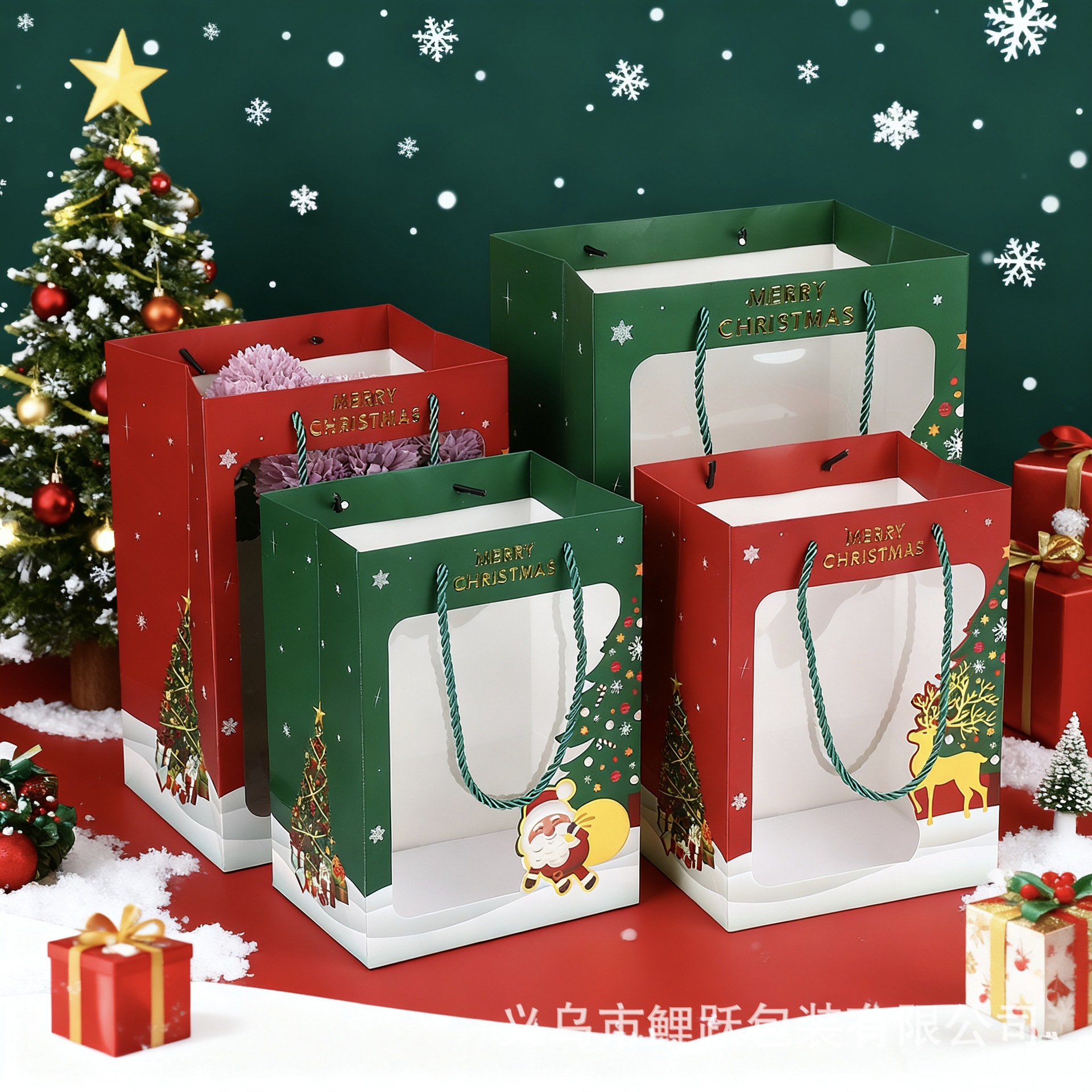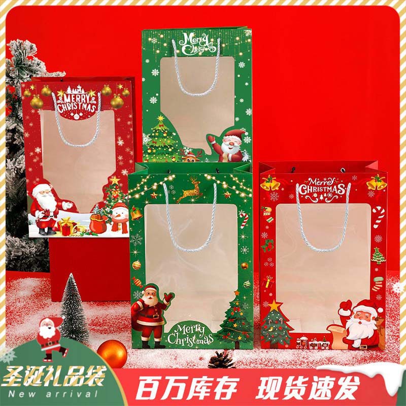 圣诞节礼品袋橱窗手提袋新款开窗透明纸袋平安夜苹果包装袋礼物袋