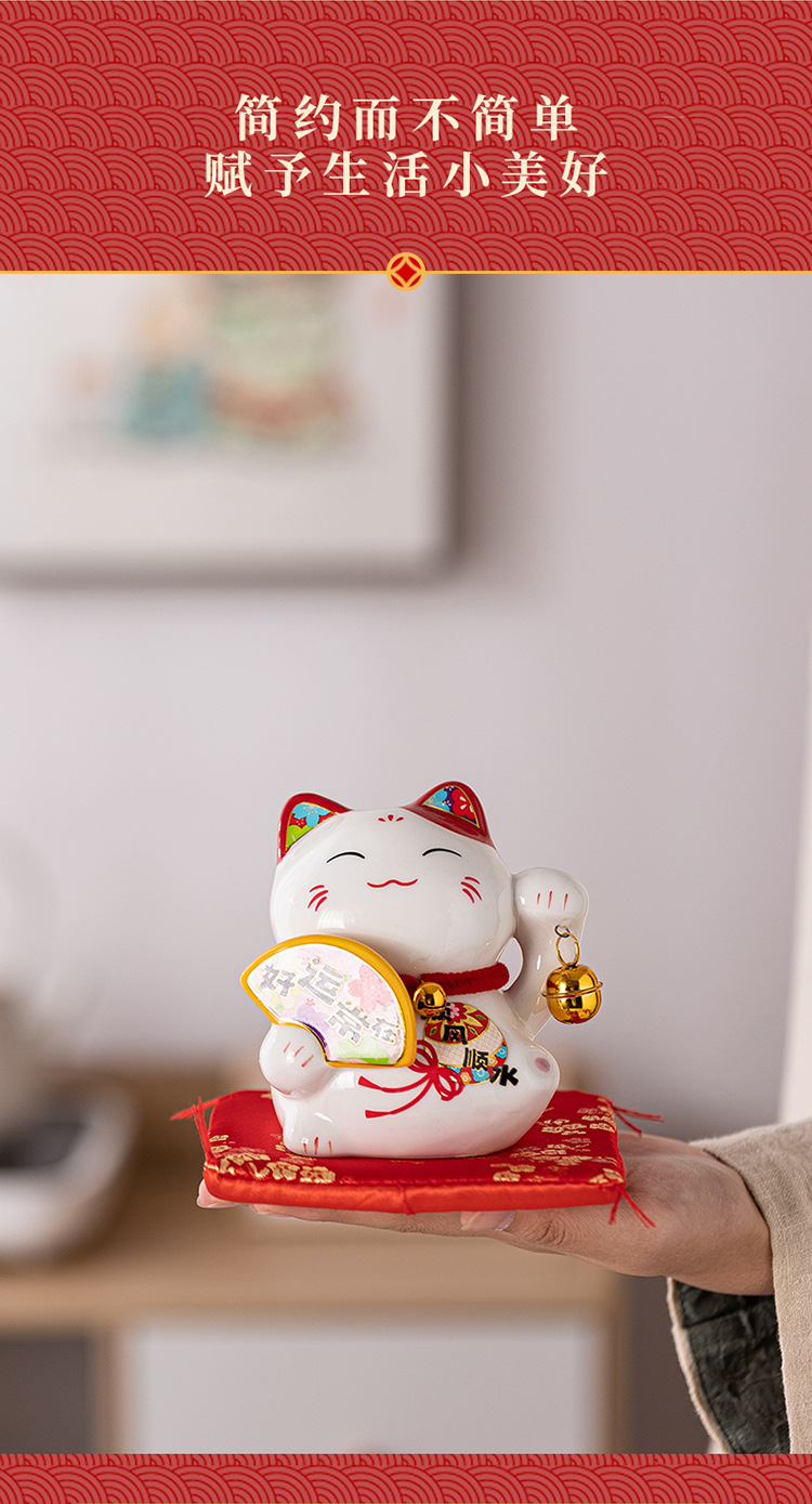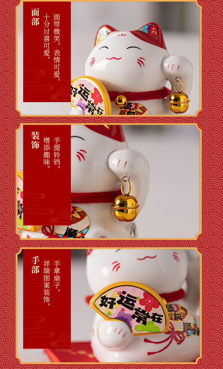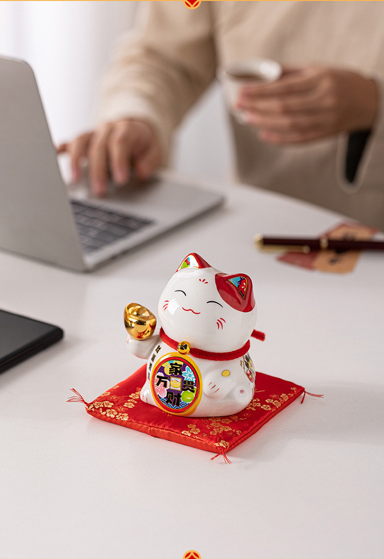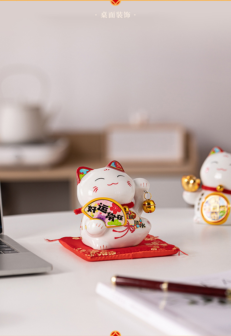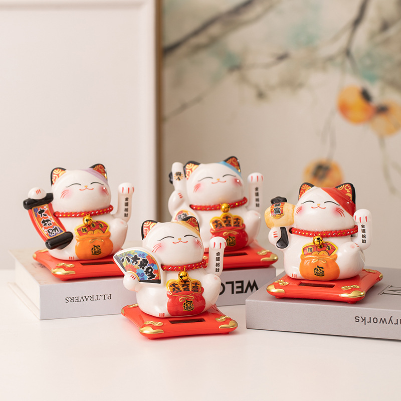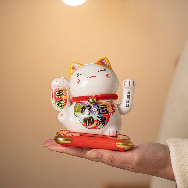 陶磁器の招き猫の置物は自動的に手を振って店をオープンして贈り物をします。