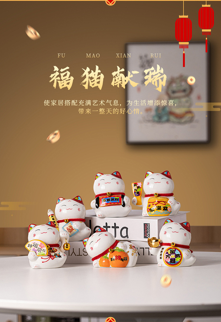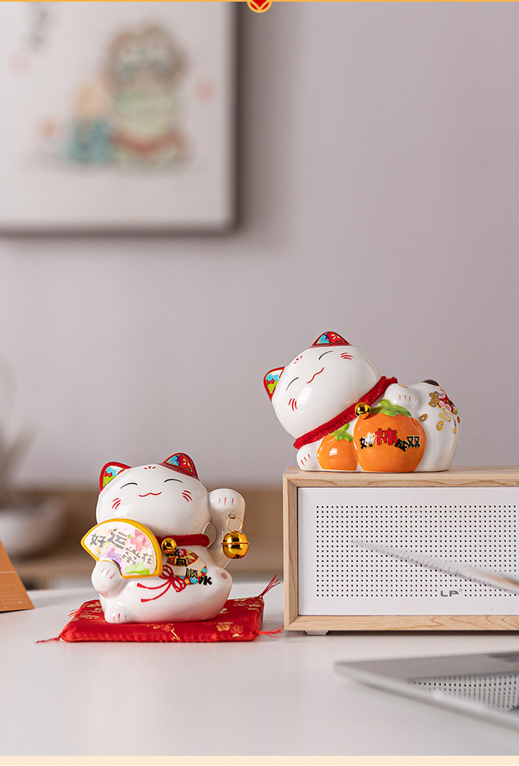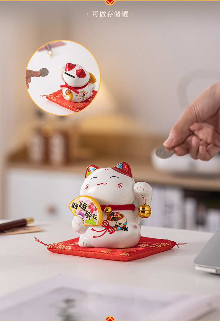 跨境新款招财猫招财陶瓷存钱罐创意新年伴手礼品家居装饰厂家批发