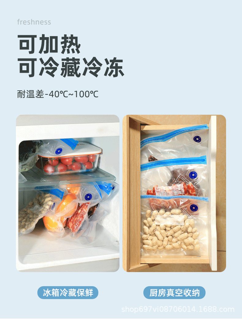 真空保存袋食品級冷蔵庫循環可能な筋目包装袋密封圧縮密封ポケット手動ポンプ