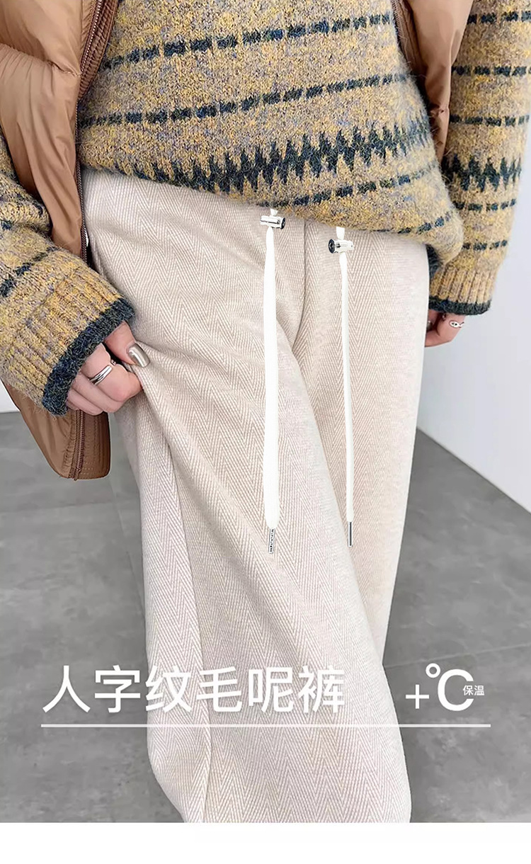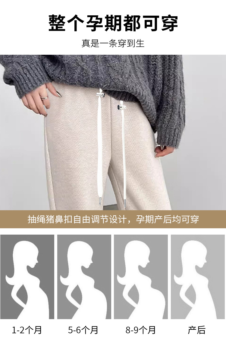 妊婦の人の字の紋様のベルベットの厚いカシミヤの広脚のズボンのストレートパンツの妊婦のズボンのズボンのゆったりしたタイプ