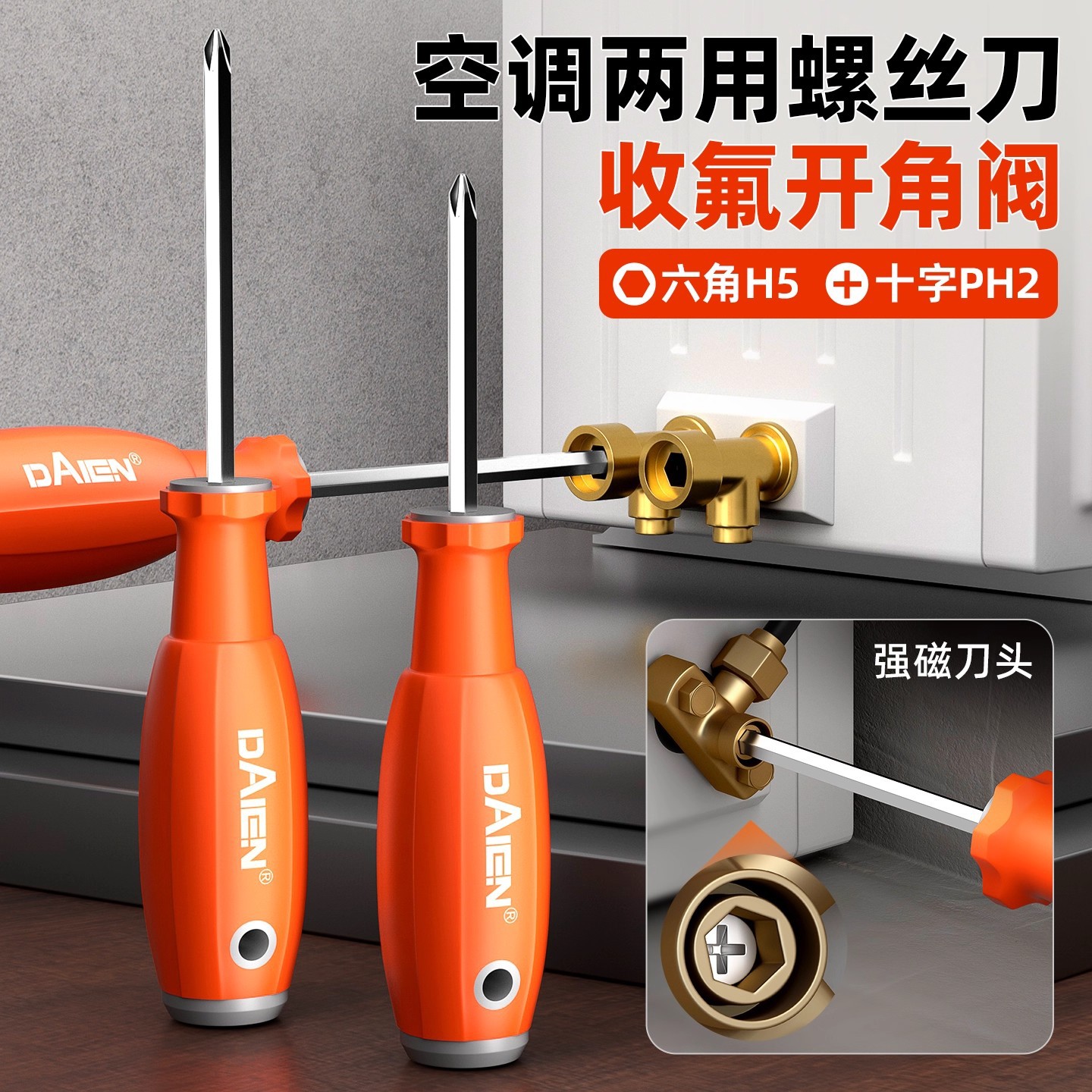 戴恩空调两用螺丝刀十字开角阀收氟专用强磁内六角5mm高硬度起子