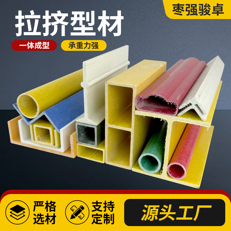 玻璃钢拉挤型材方形圆管矩形管围栏防腐檩条日字管角钢槽钢工字钢