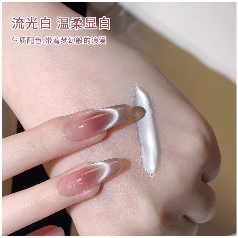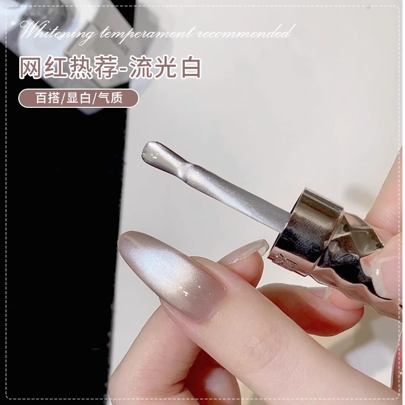 ネットセレブ人気ストリーマーホワイトキャットアイマニキュア接着剤2025春夏新作人気磁器ホワイトガラスビーズキャットアイ接着剤