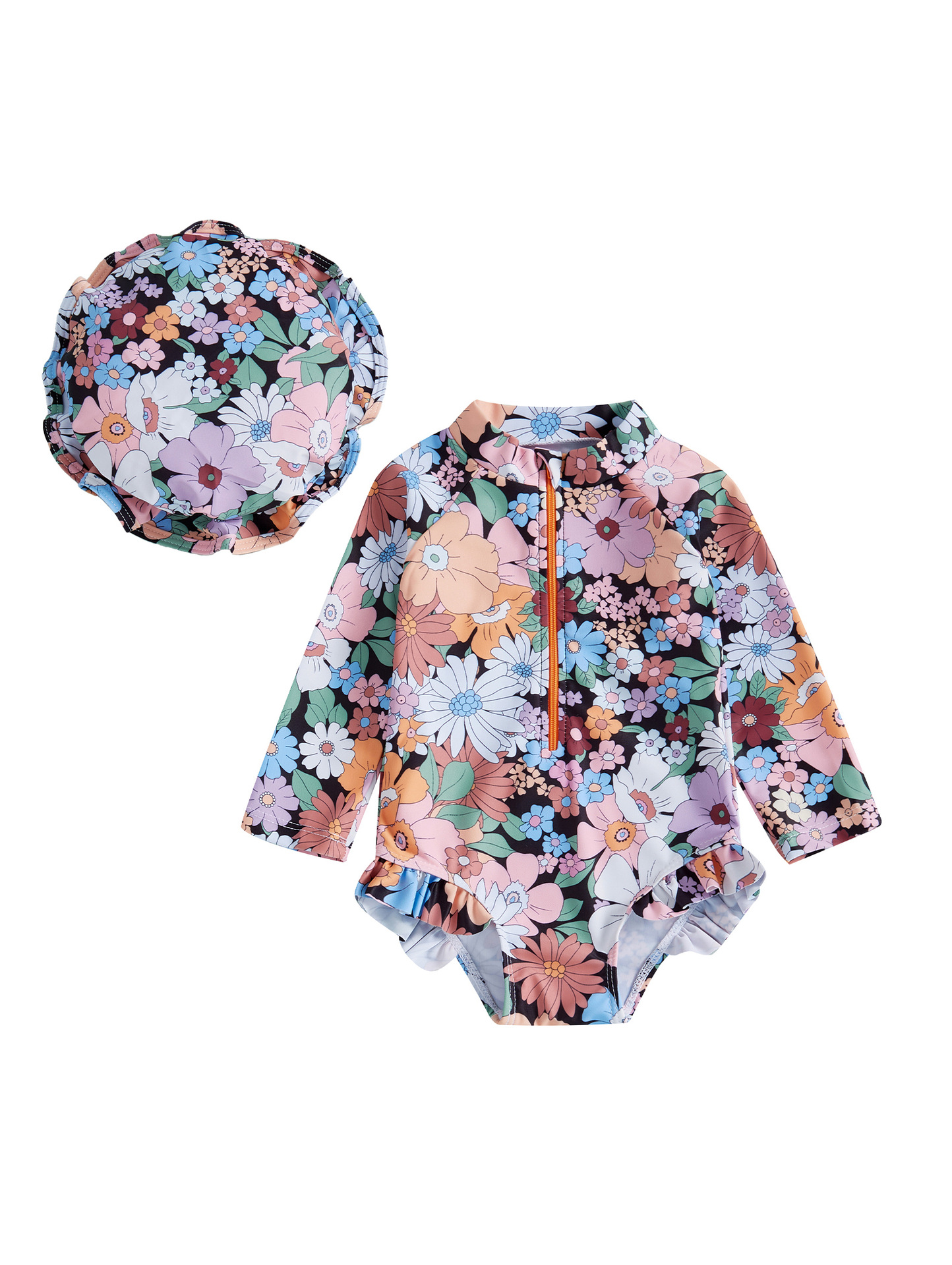 70-80-90-100-110-120帽子ワンピース長袖子供水着