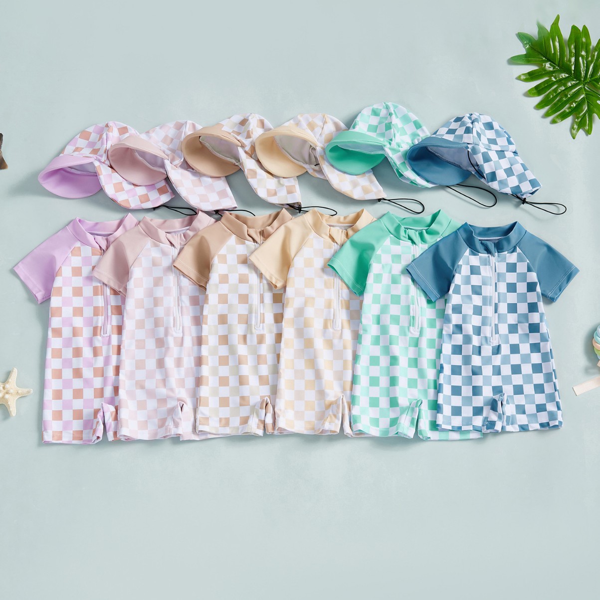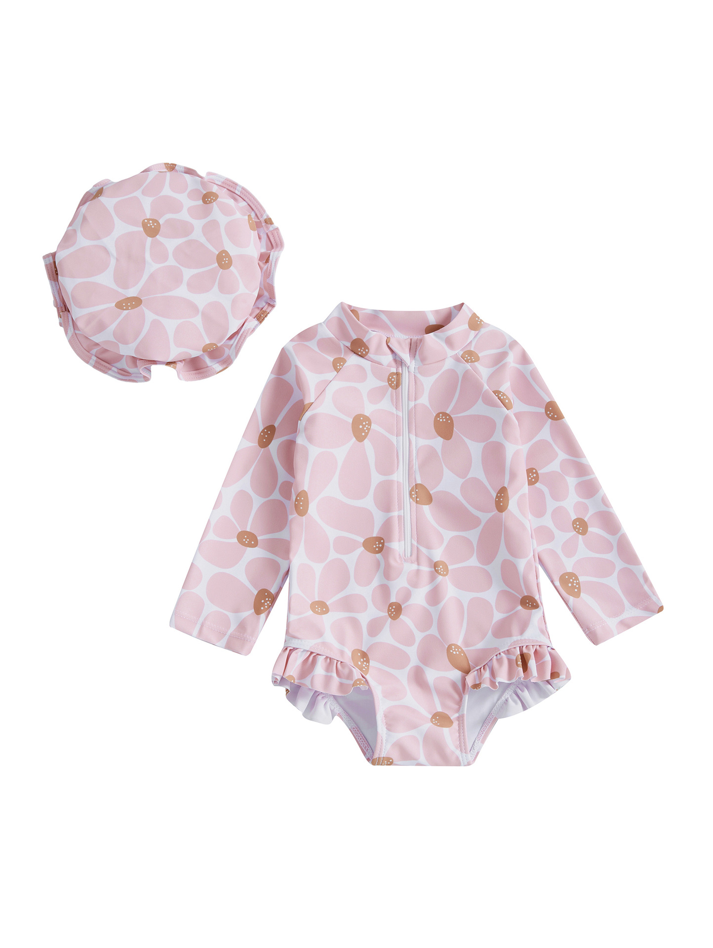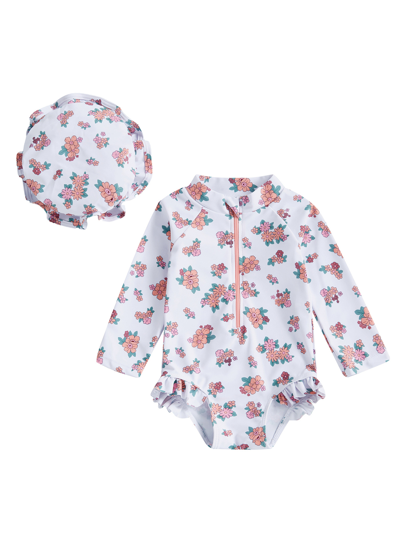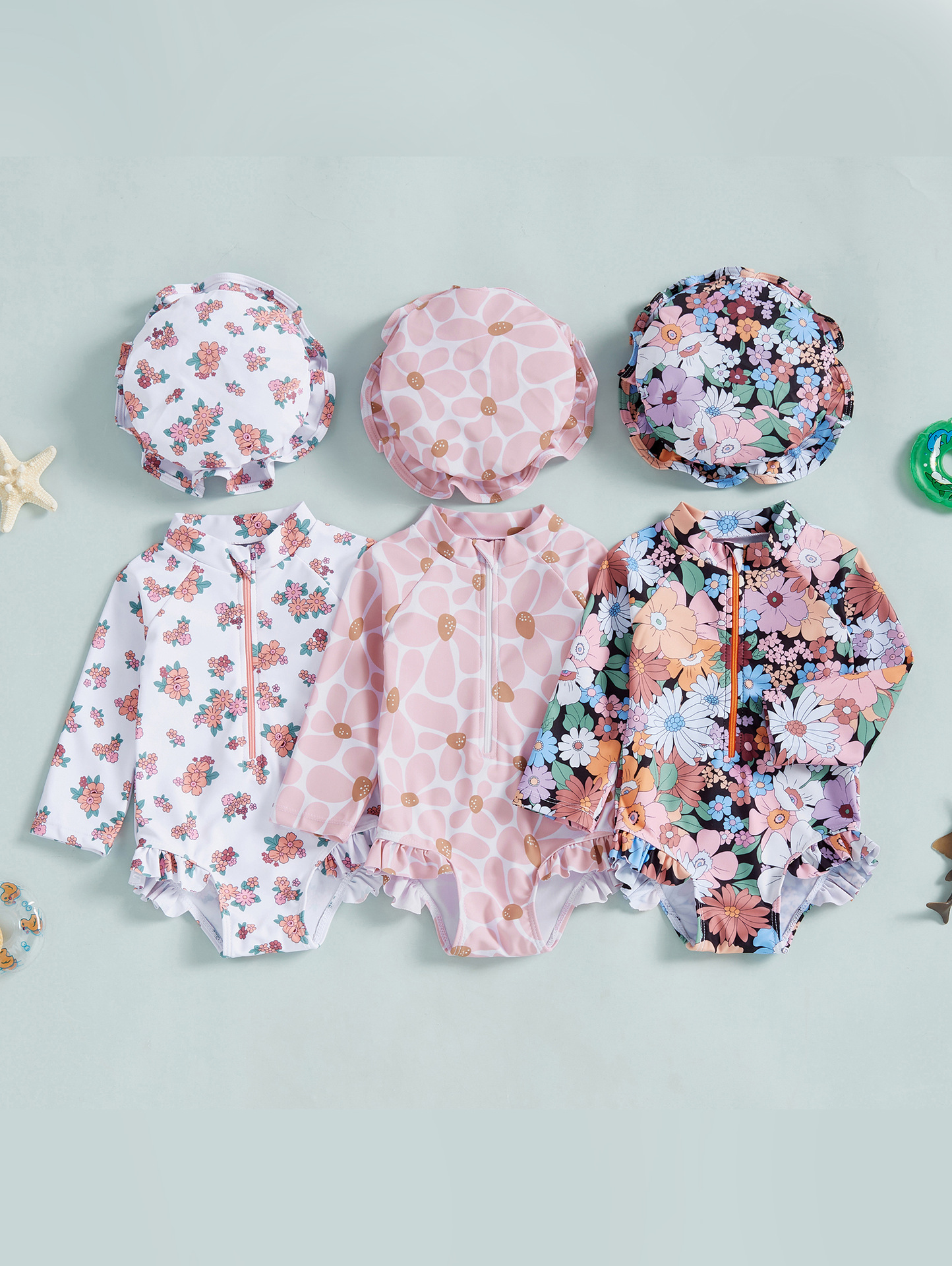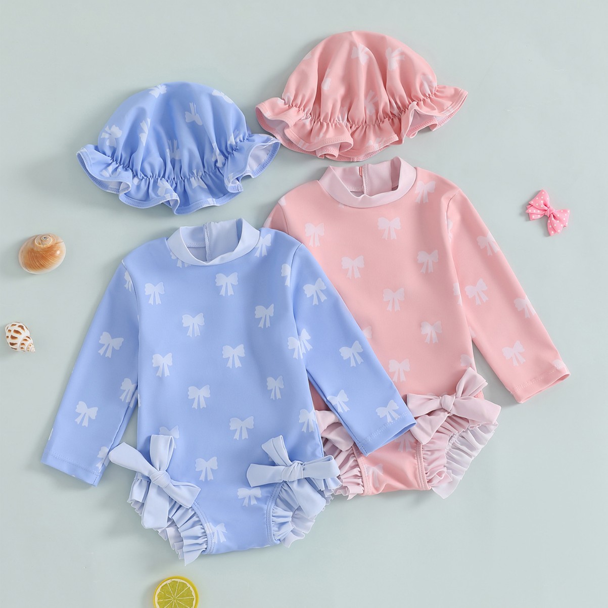 60-70-80-90-100帽子ワンピース長袖子供水着