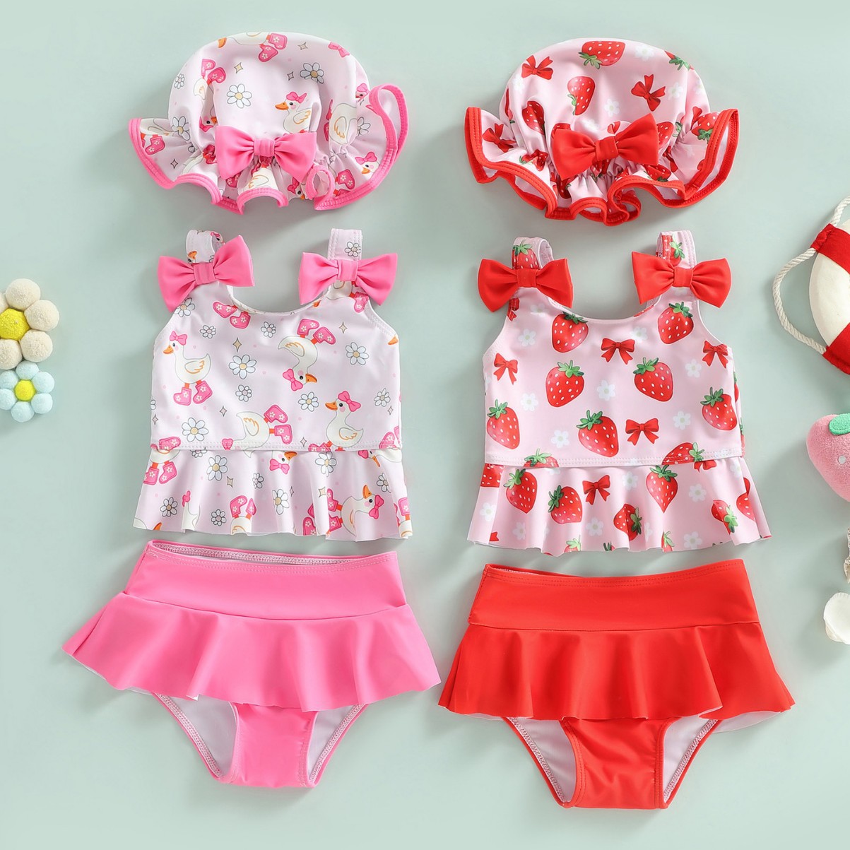 2026新款女童分体草莓印花套装公主风甜美可爱游泳速干度假泳衣