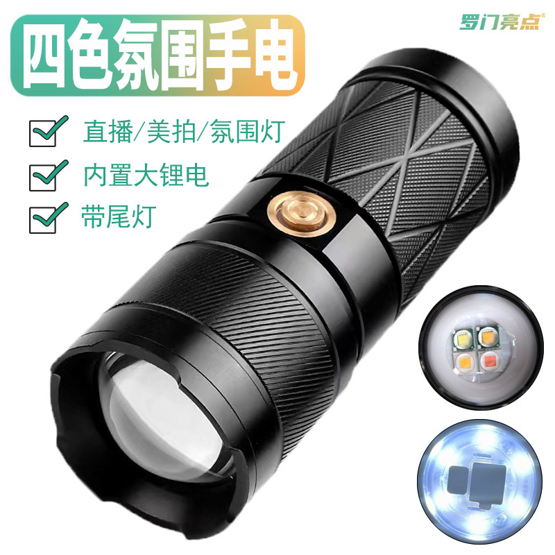 新しい写真撮影用補助光、4色ズーム可能な白色レーザー懐中電灯、充電式、美容ライブ配信用、長距離照射、超高輝度ライト