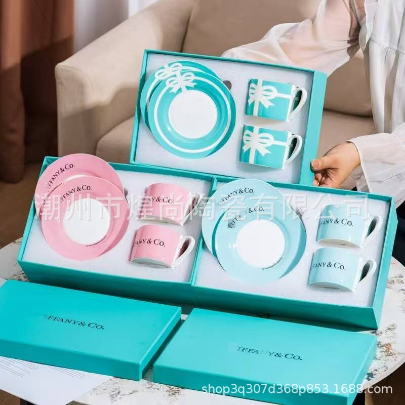 欧式轻奢高颜值骨瓷咖啡杯碟T家网红风下午茶咖啡杯碟蝴蝶礼盒装